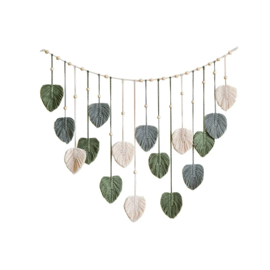 ديكور بايتس™ نسيج مكرمية على شكل أوراق الشجر، نسيج جداري بني وأخضر، ديكور منزلي على شكل بوهو، تعليق جداري مكرمية، ديكورات غرفة المعيشة المنزلية، هدية جمالية