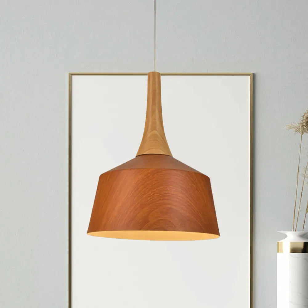 مصباح معلق على شكل حظيرة مزرعة - أبيض/أحمر بني/لون القهوة، مصباح معلق من الألومنيوم مع غطاء خشبي