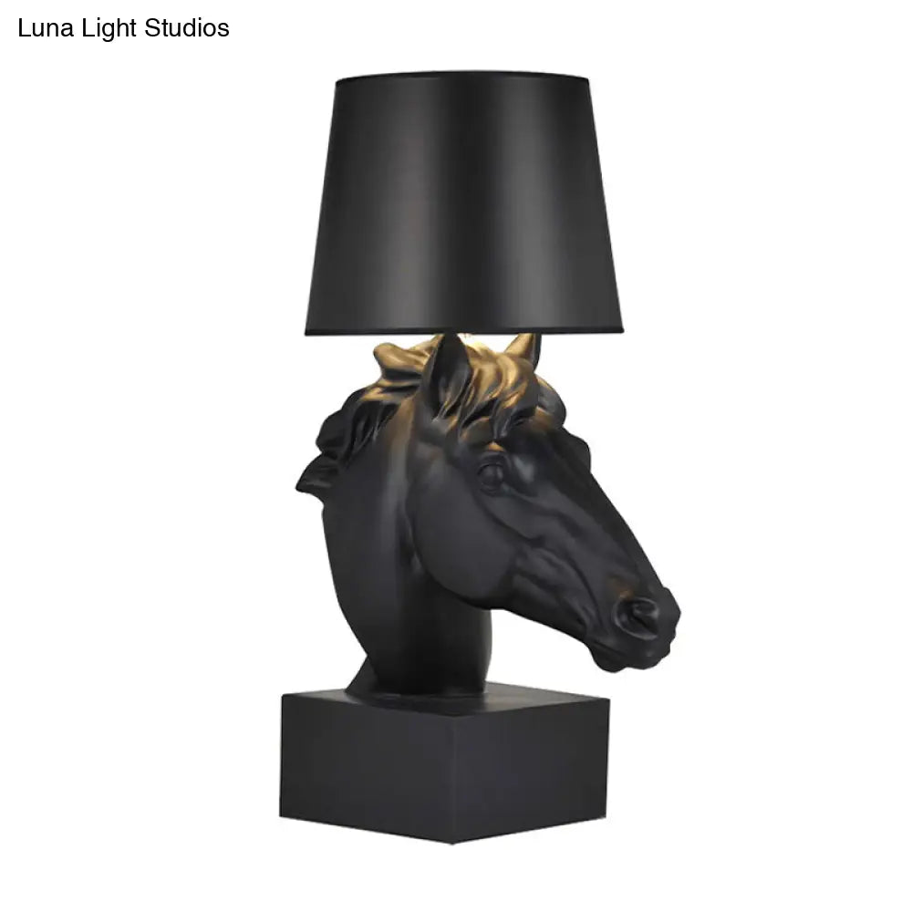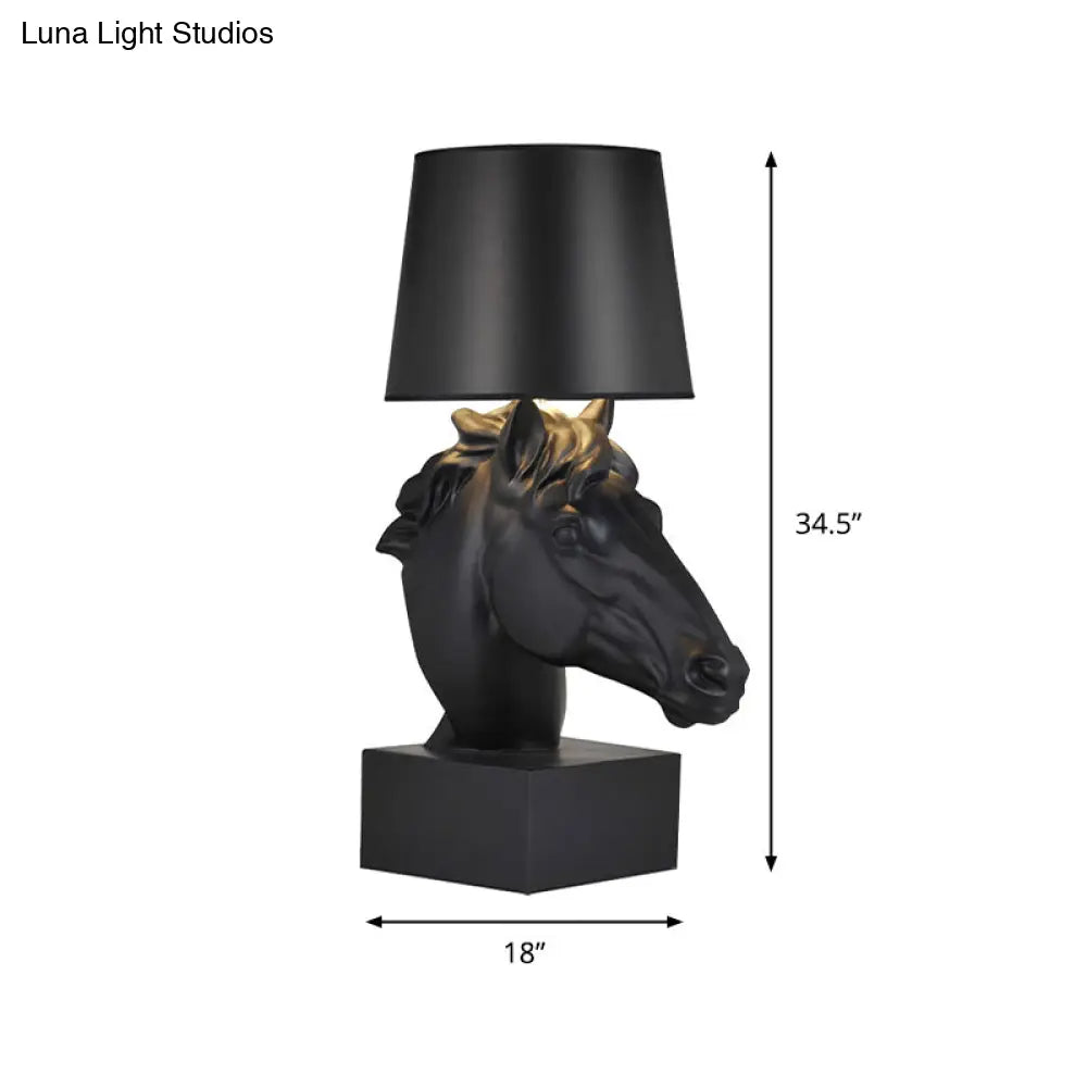 مصباح طاولة من القماش الأسود على الطراز الريفي مع قاعدة على شكل رأس حصان - إضاءة ليلية مدببة لغرفة المعيشة