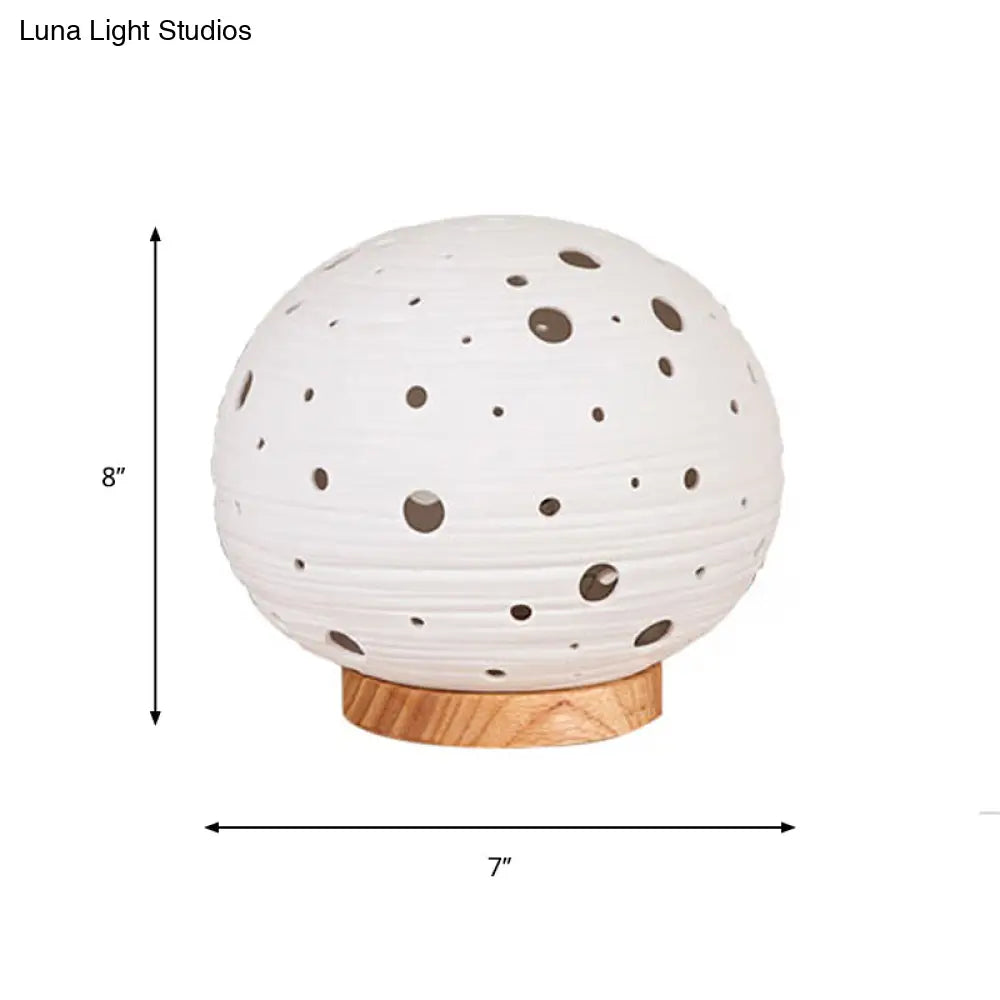 مصباح مكتبي أبيض معاصر - غطاء كروي من السيراميك المقطوع بالليزر - مصباح طاولة ليلية برأس واحد