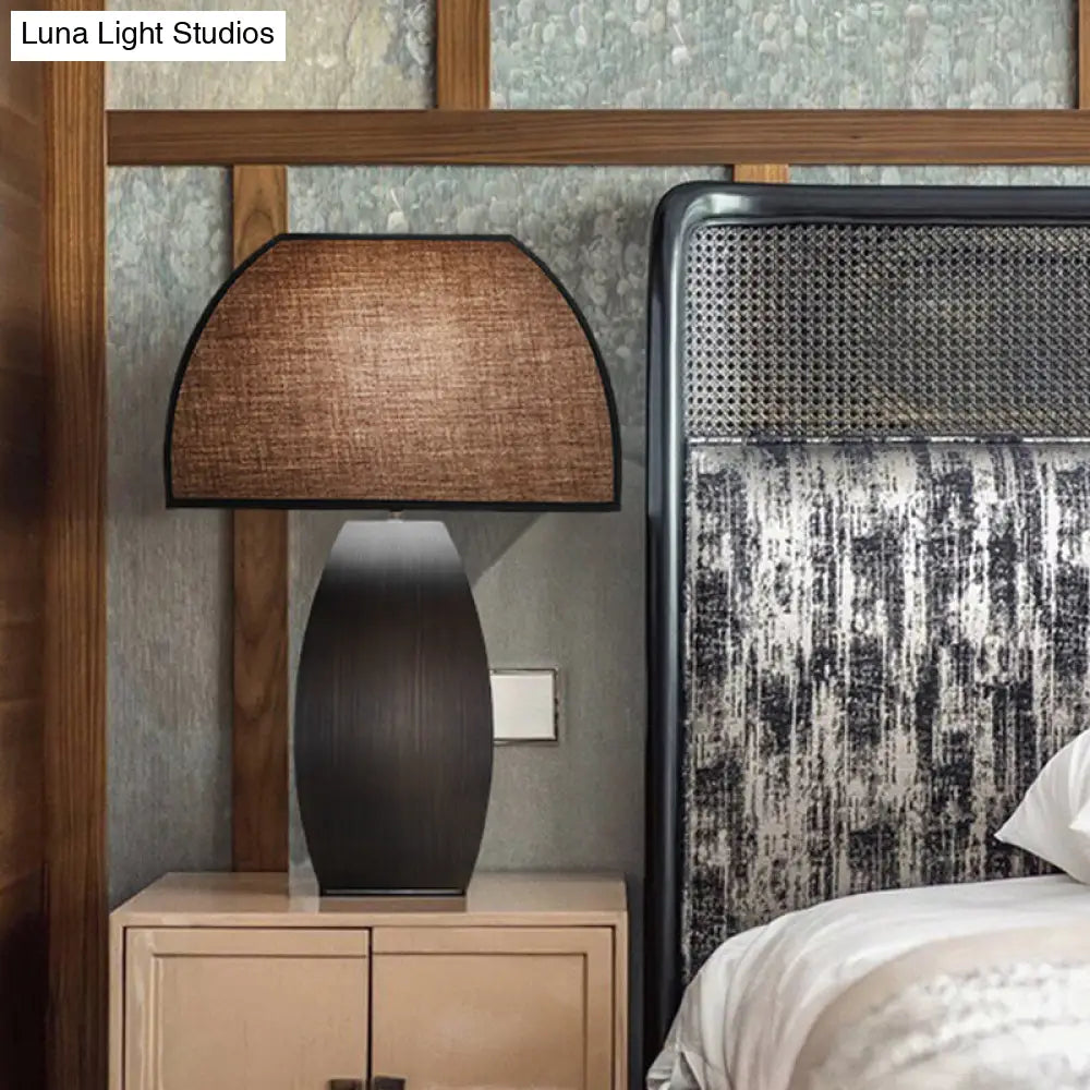 مصباح مكتبي صغير بإضاءة منحنية للمهام باللون الرمادي وقاعدة معدنية - تصميم قماشي عصري