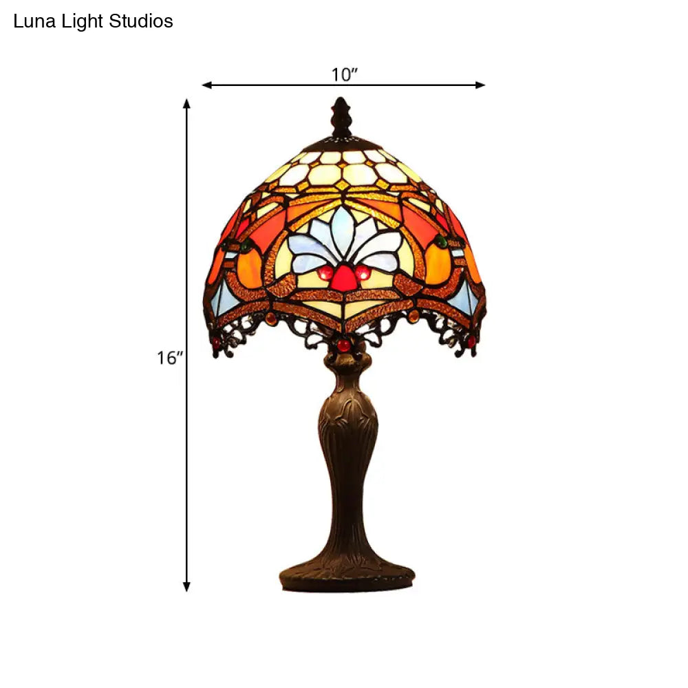 مصباح طاولة لغرفة المعيشة على طراز تيفاني باللون البني الداكن مع غطاء زجاجي مطلي بقطع ببغاء
