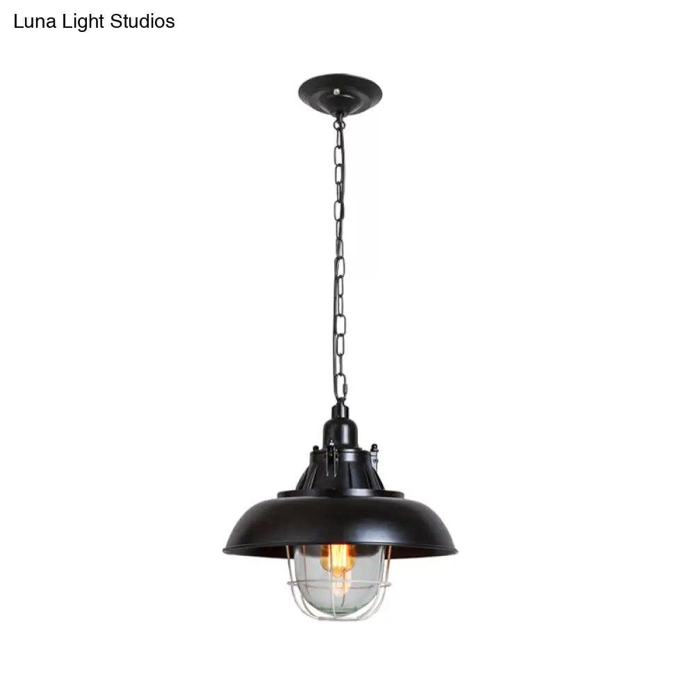 مصباح معلق معدني أسود مع غطاء زجاجي شفاف لسقف غرفة المعيشة - تصميم مقبب مصنع