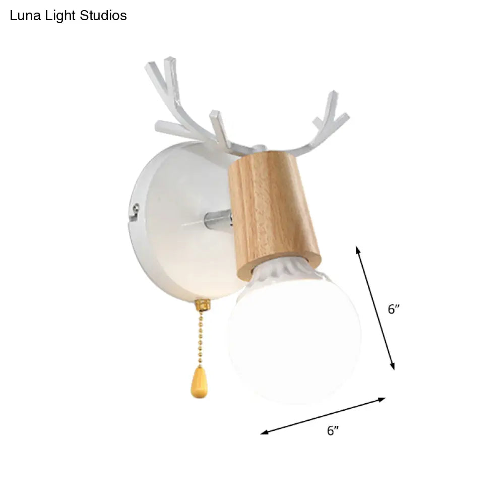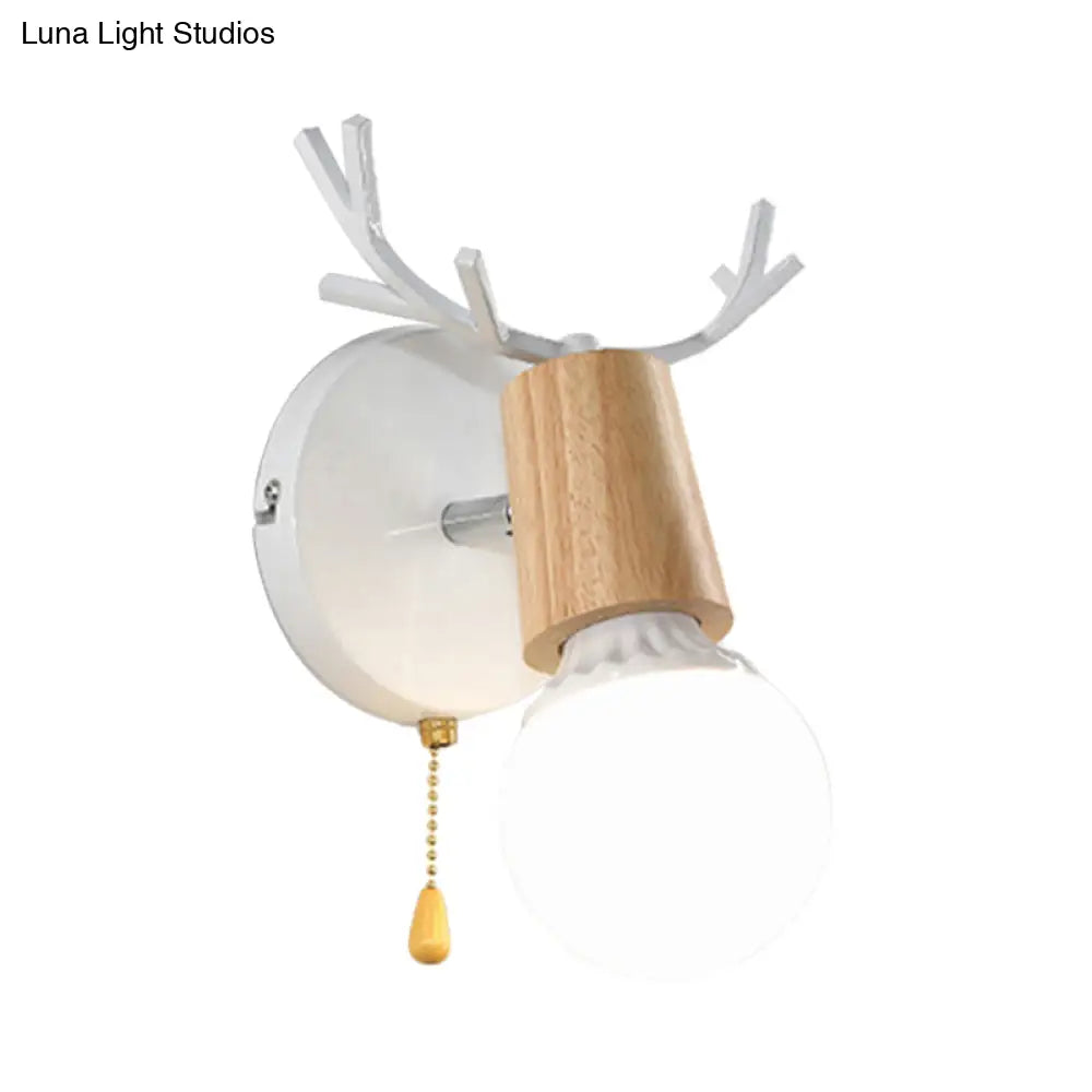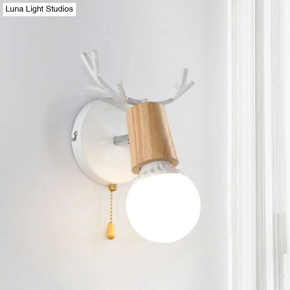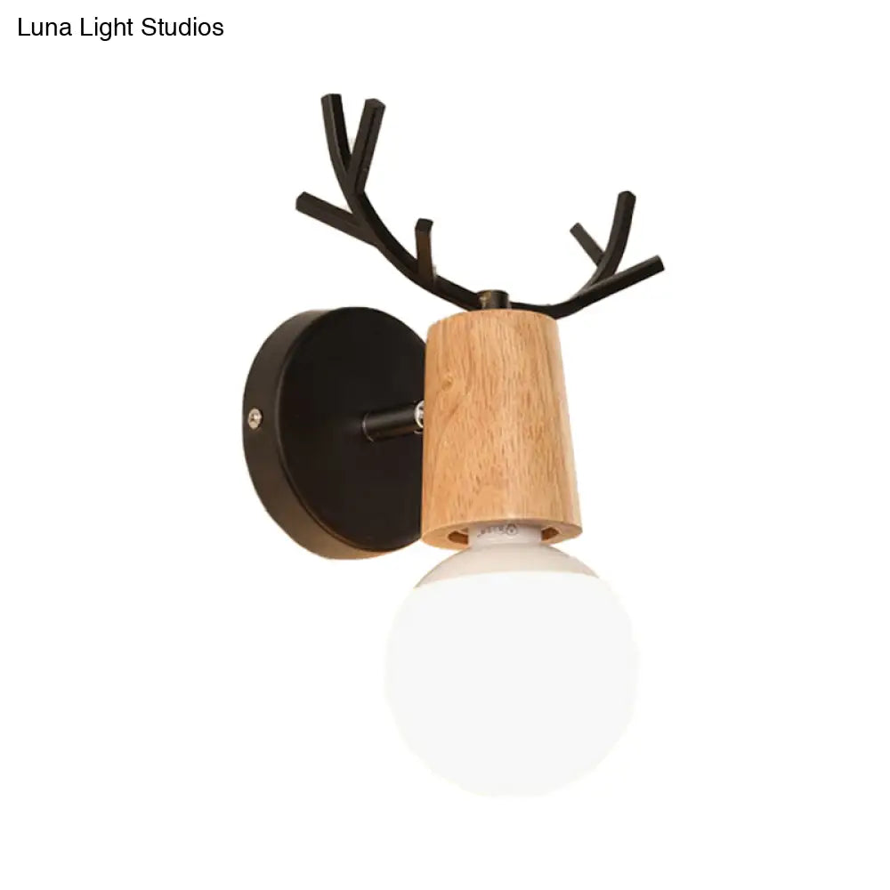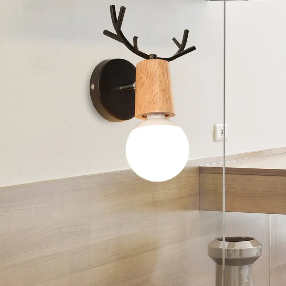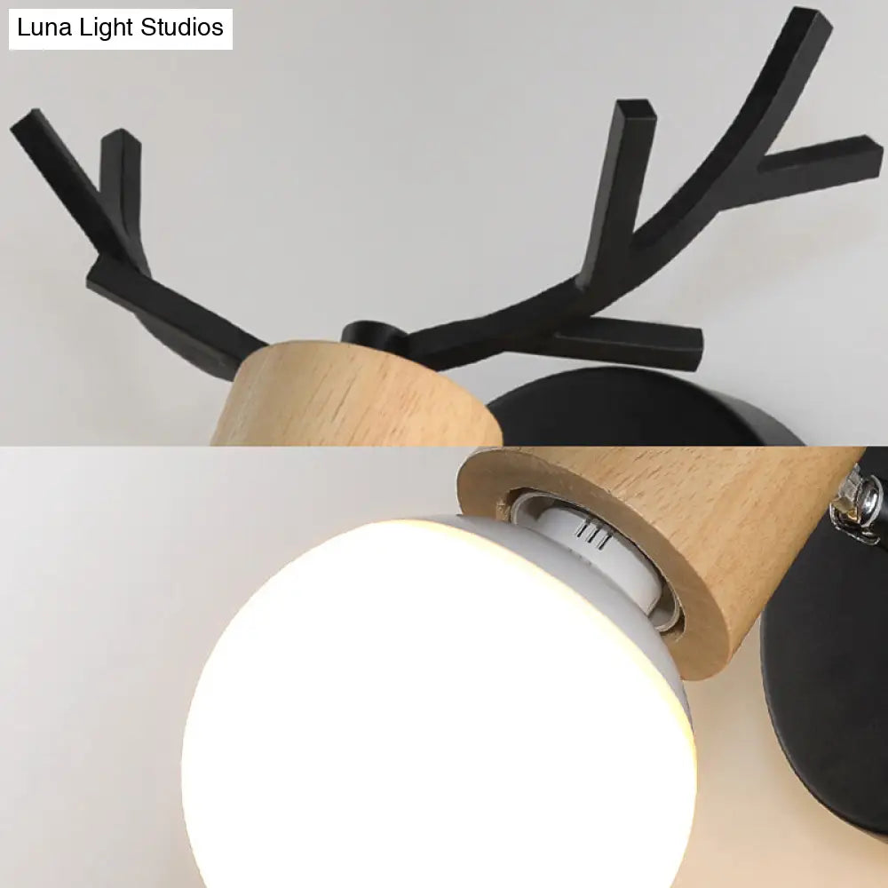 مصباح حائطي عصري من المعدن والخشب باللونين الأبيض والأسود مع لمسات من قرن الغزال