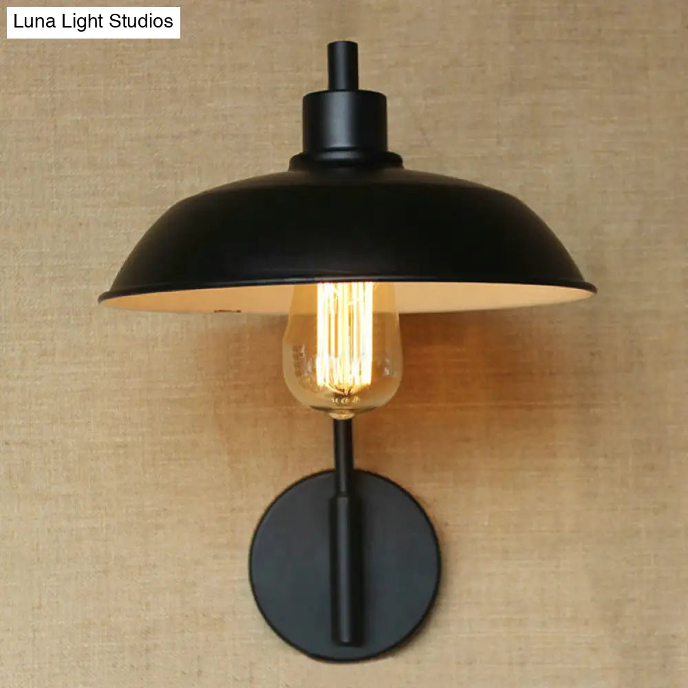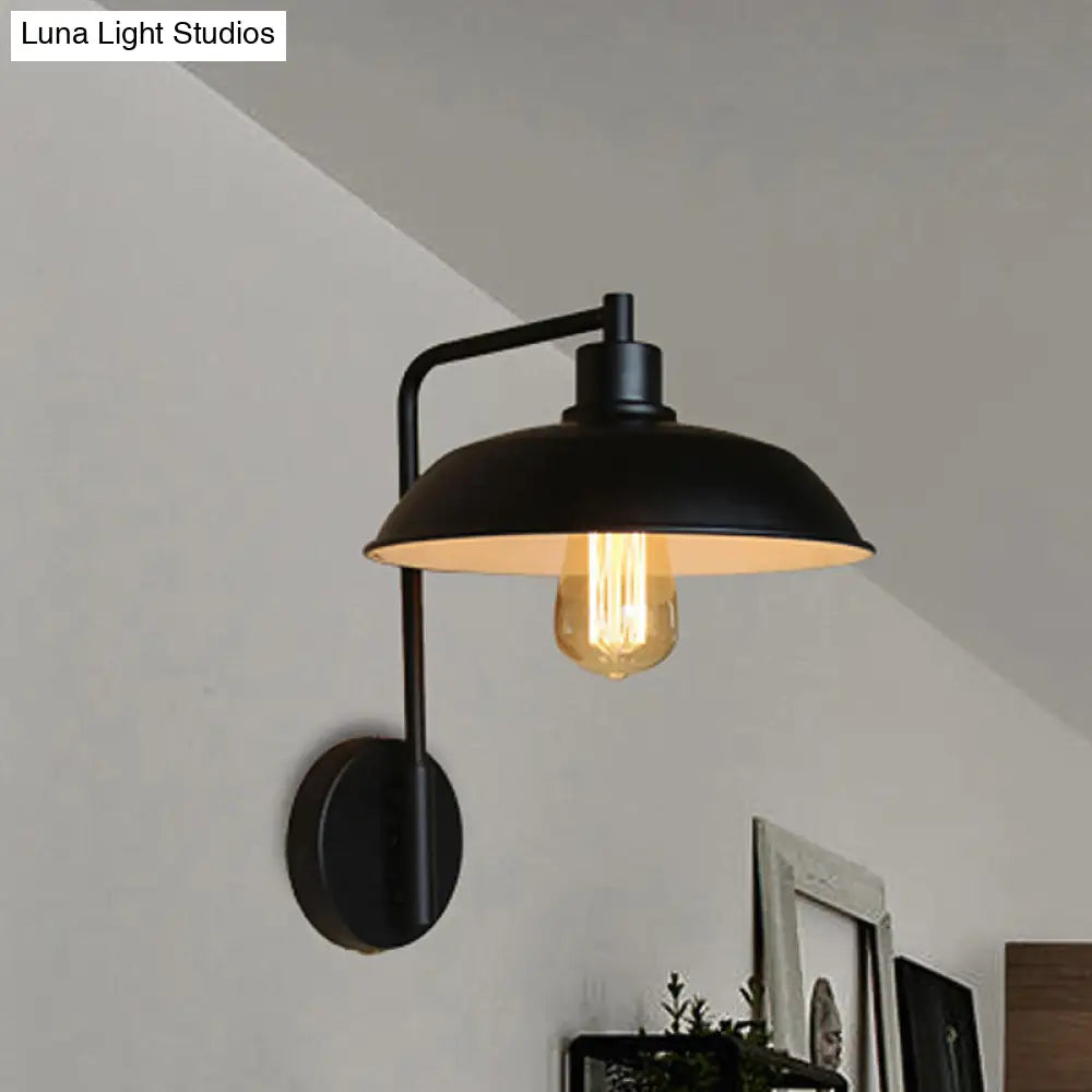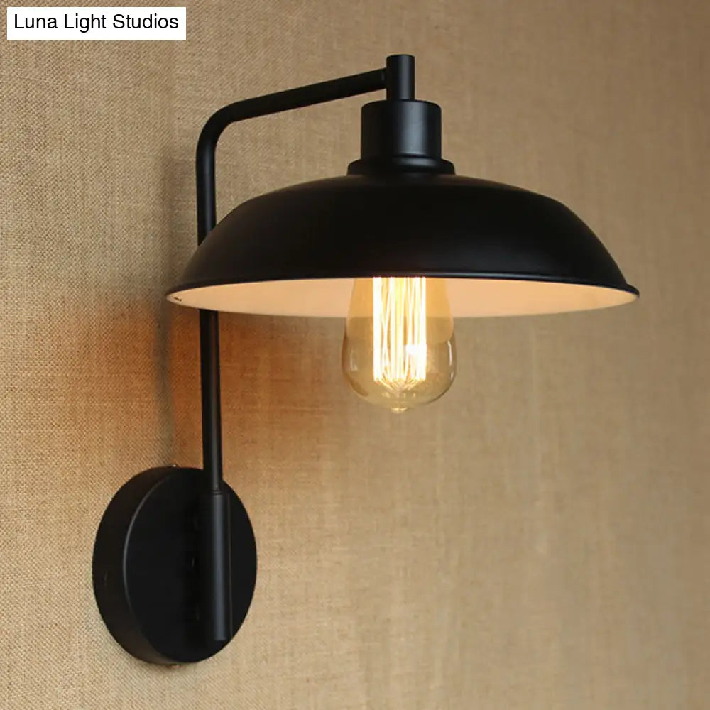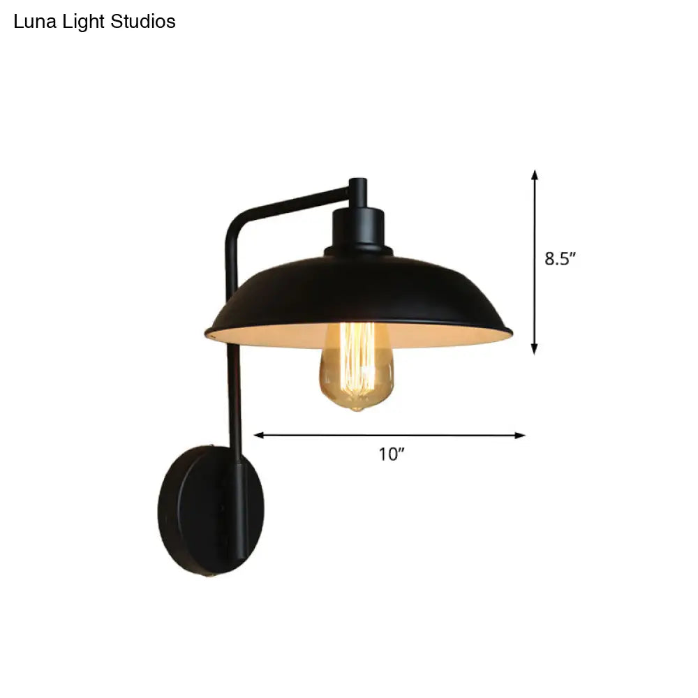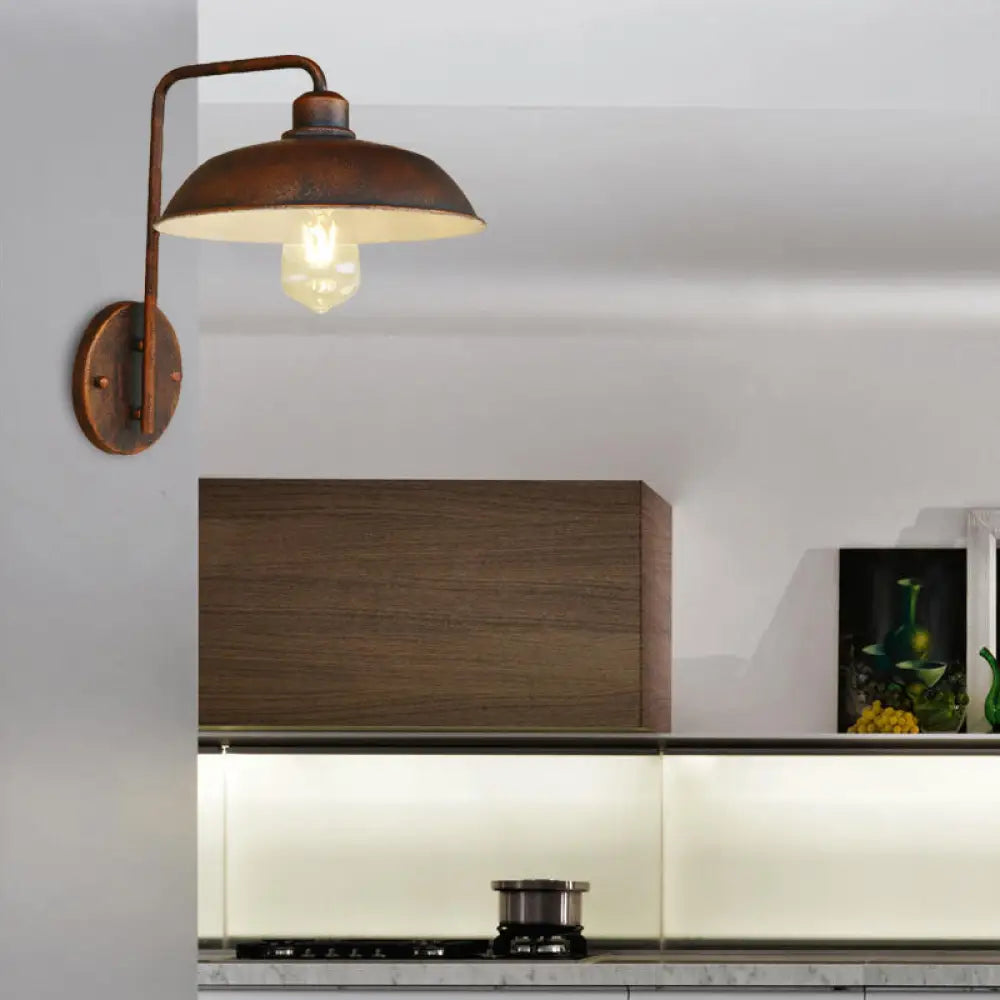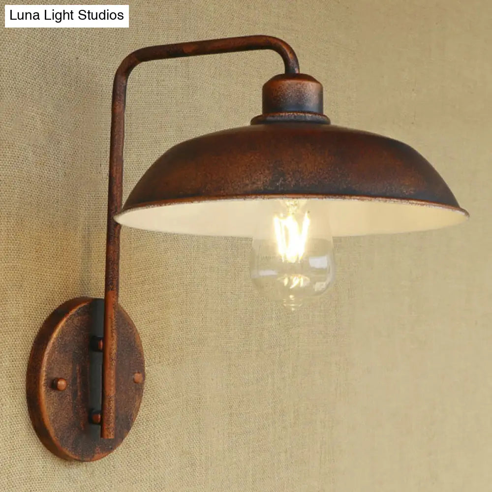 مصباح حائطي عتيق الطراز، مزود بمصباح واحد، باللون الأسود/الصدأ المعدني، مزود بذراع منحني للممر