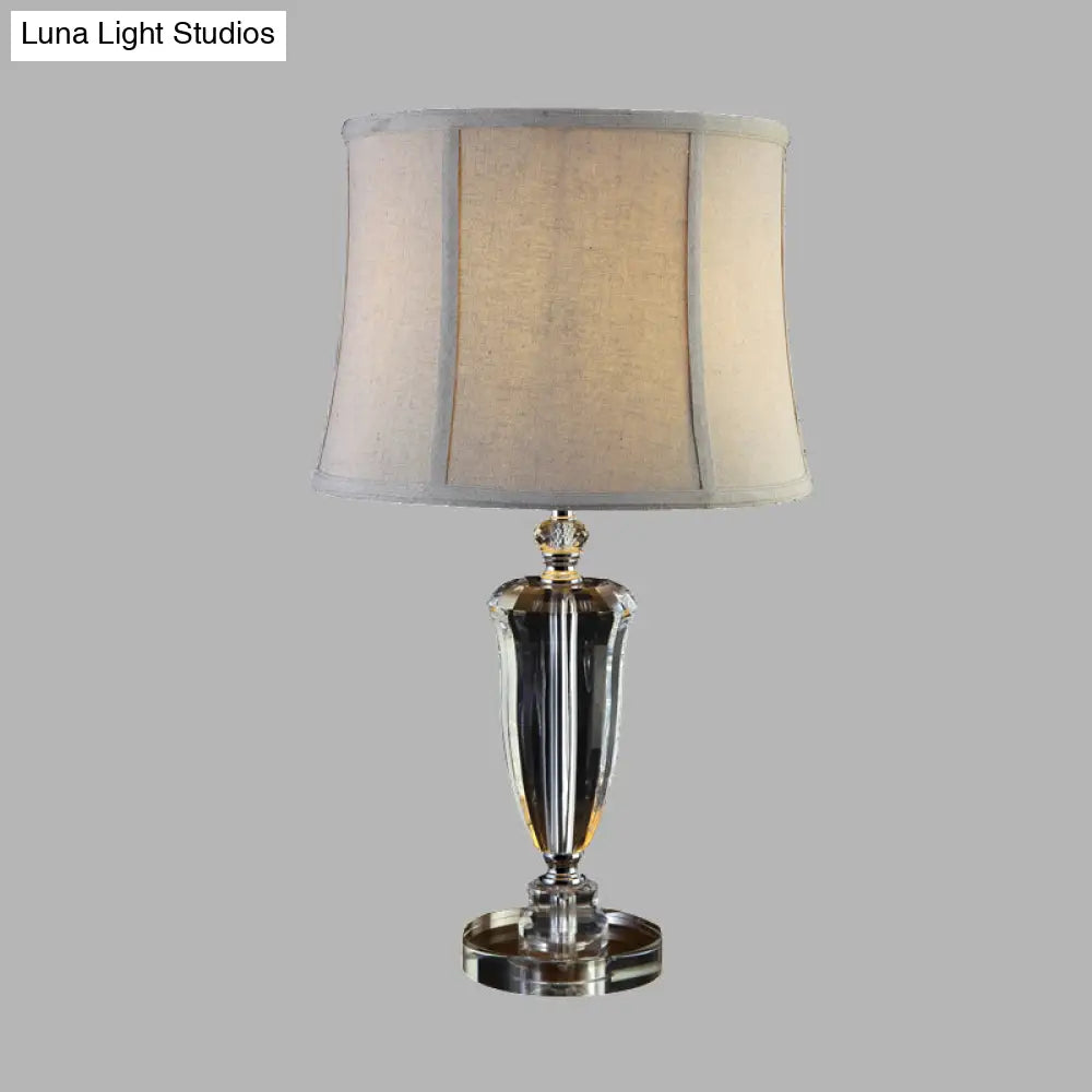 مصباح طاولة بجانب السرير باللون الرمادي الكريمي الريفي مع لمسة من الكريستال وغطاء أسطواني من القماش
