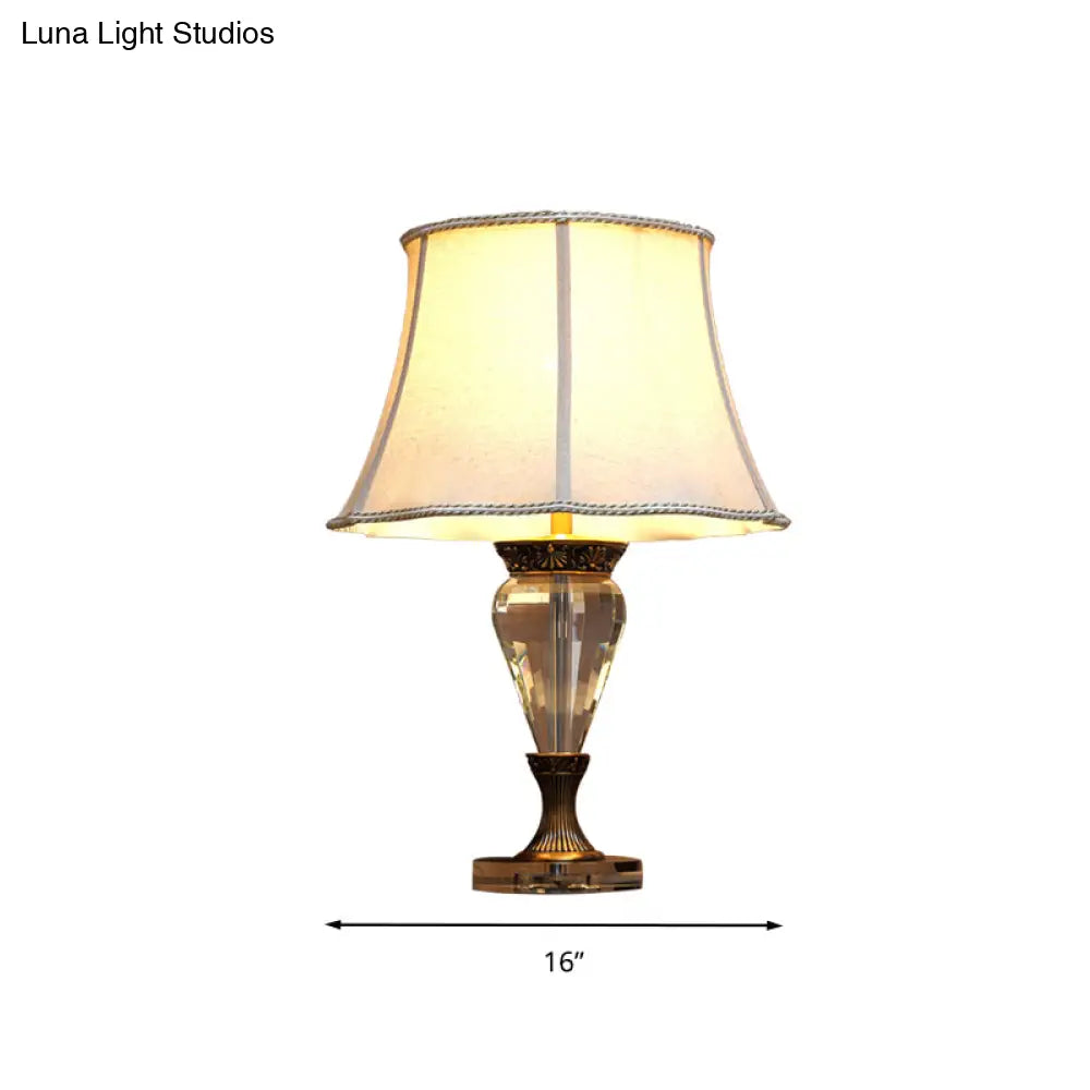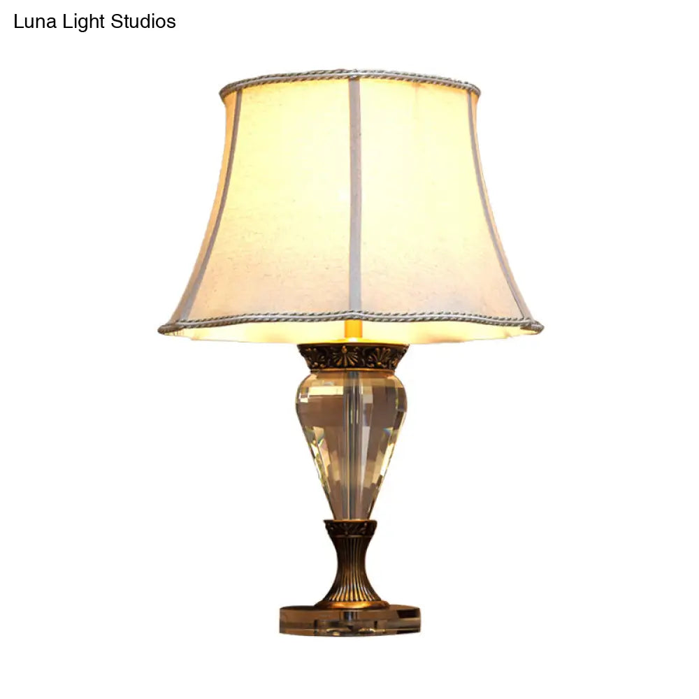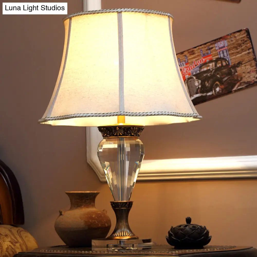 مصباح طاولة من القماش باللون البيج الريفي مع لمسة من الكريستال - مصباح طاولة ليلية بجرس واحد