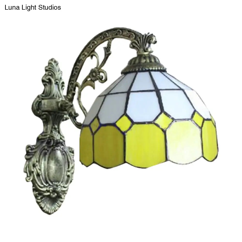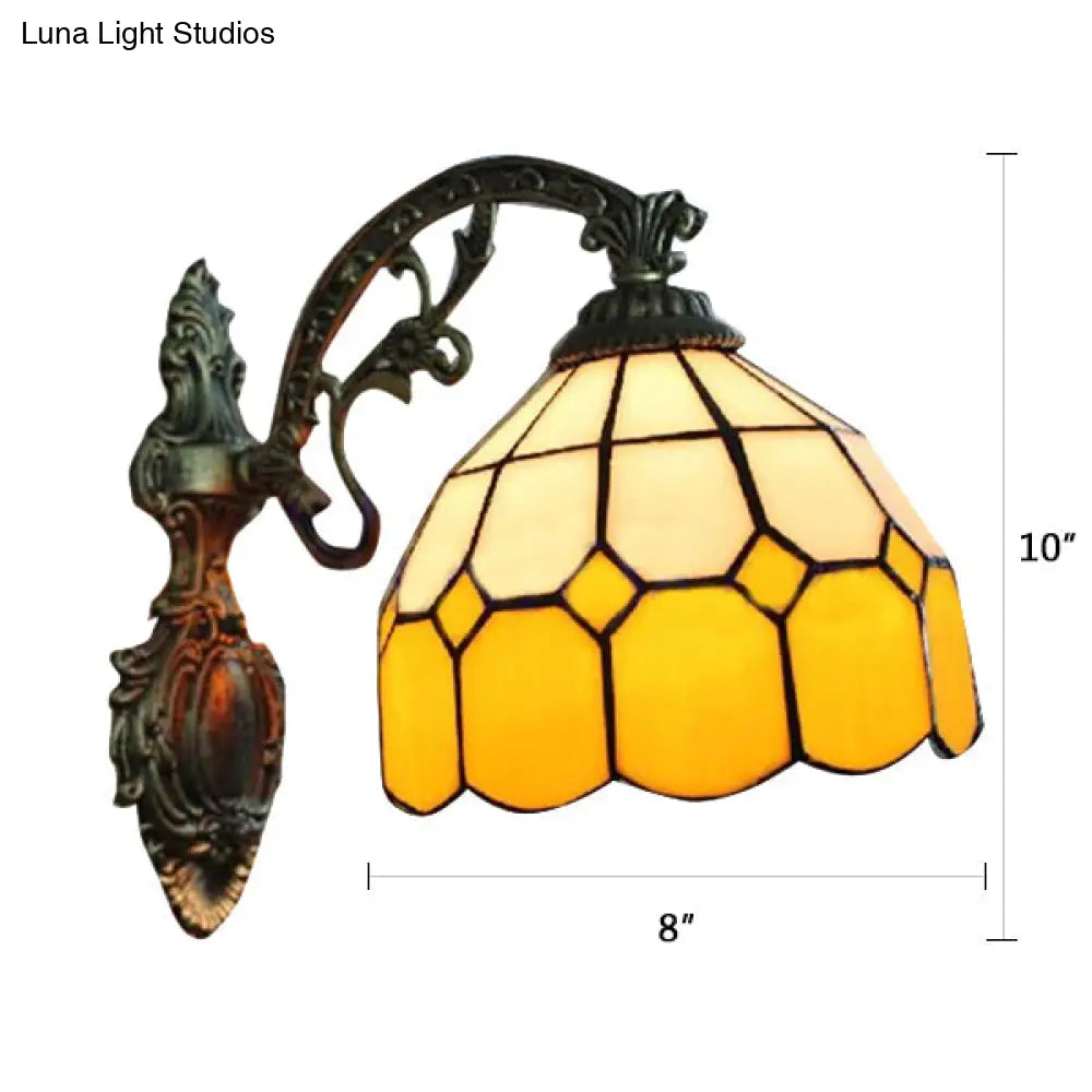 مصباح حائط صغير بذراع منحني وغطاء زجاجي أصفر - إضاءة حائط غرفة النوم