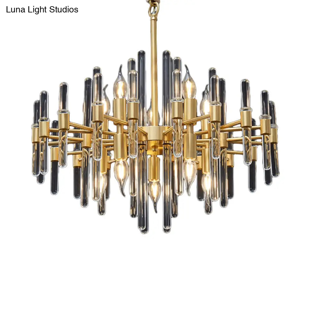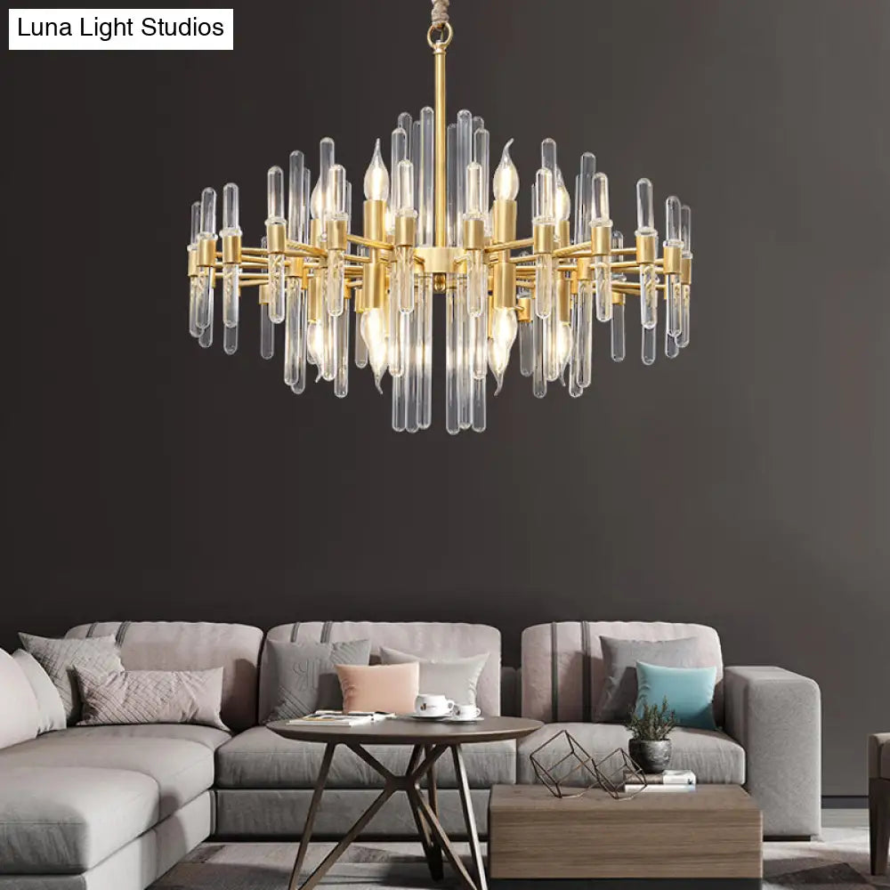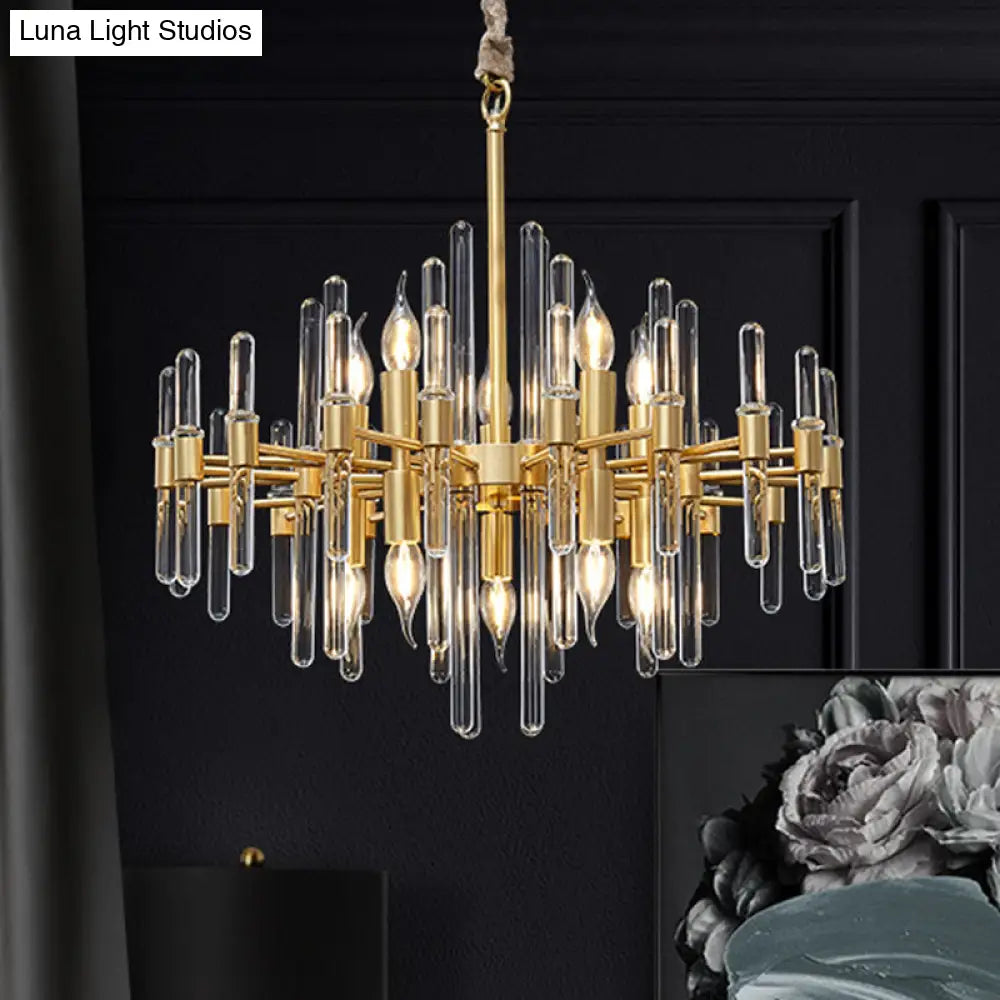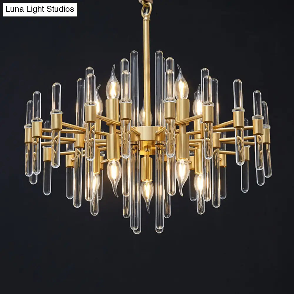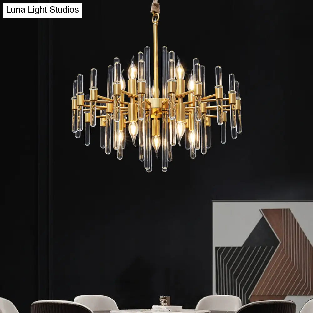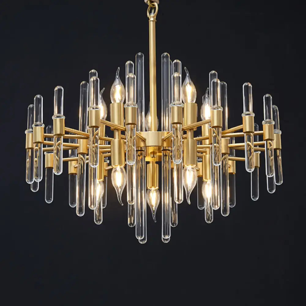 ثريا كريستالية على شكل قضيب - ١٠ رؤوس، تصميم شعاعي نحاسي حديث لغرفة المعيشة