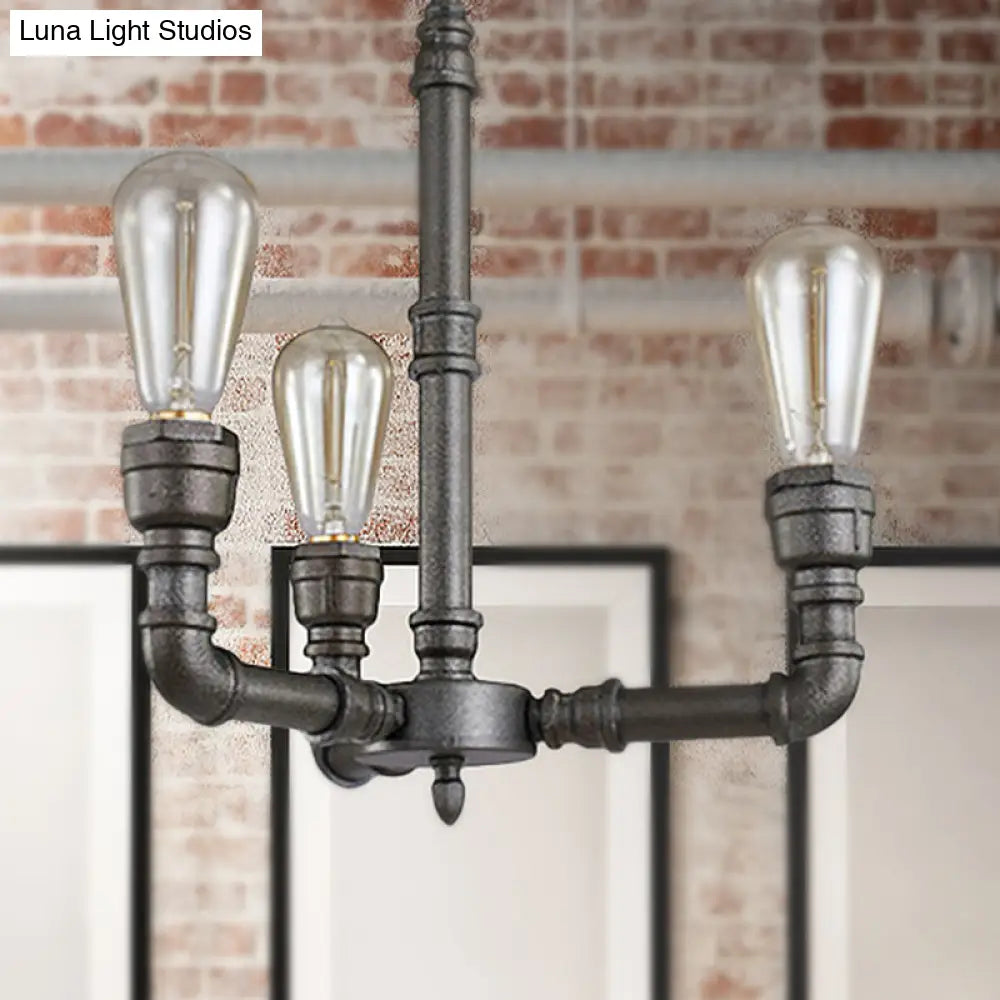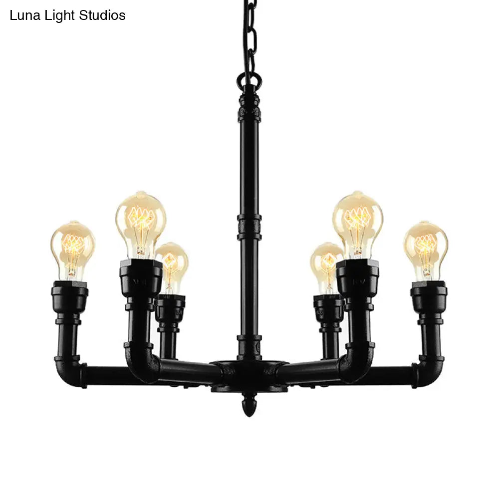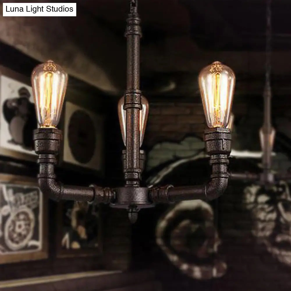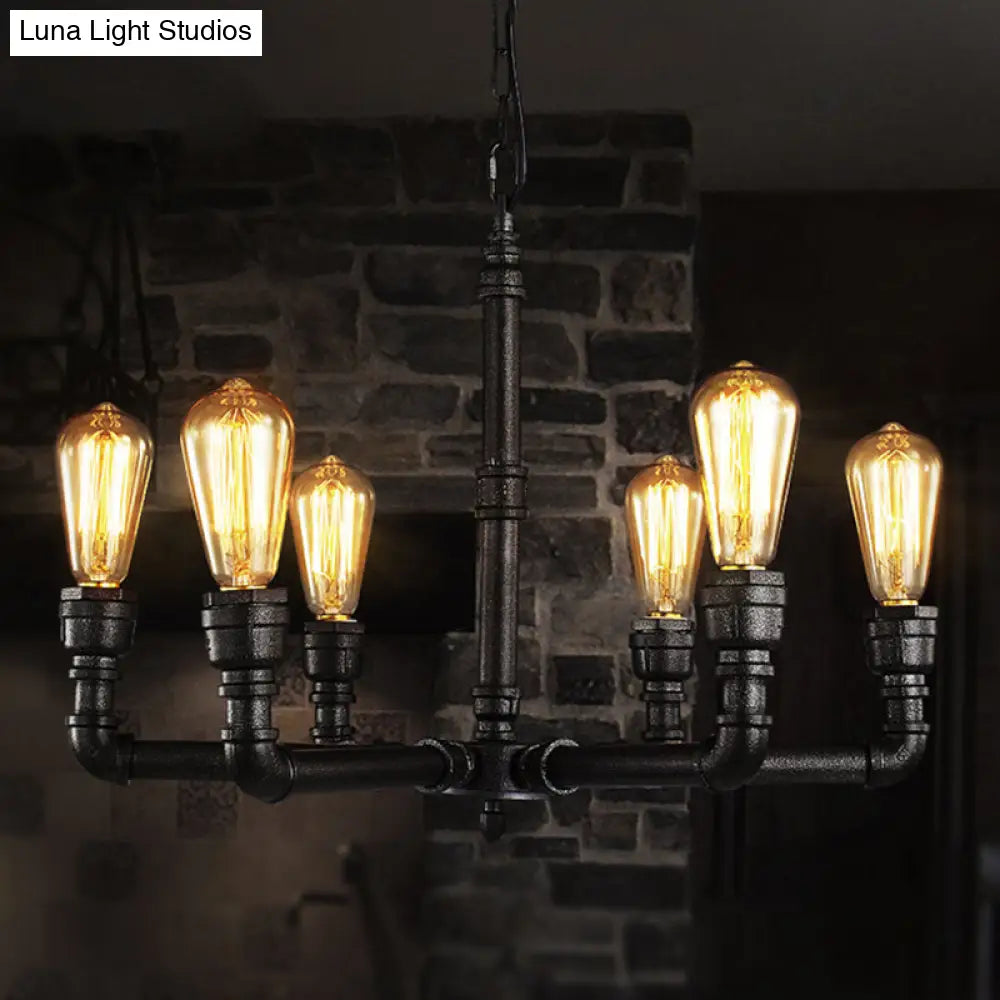ثريا معدنية عتيقة معلقة: 3/6 رؤوس، تصميم لمبة عارية مع لمسة من أنبوب الماء - أسود