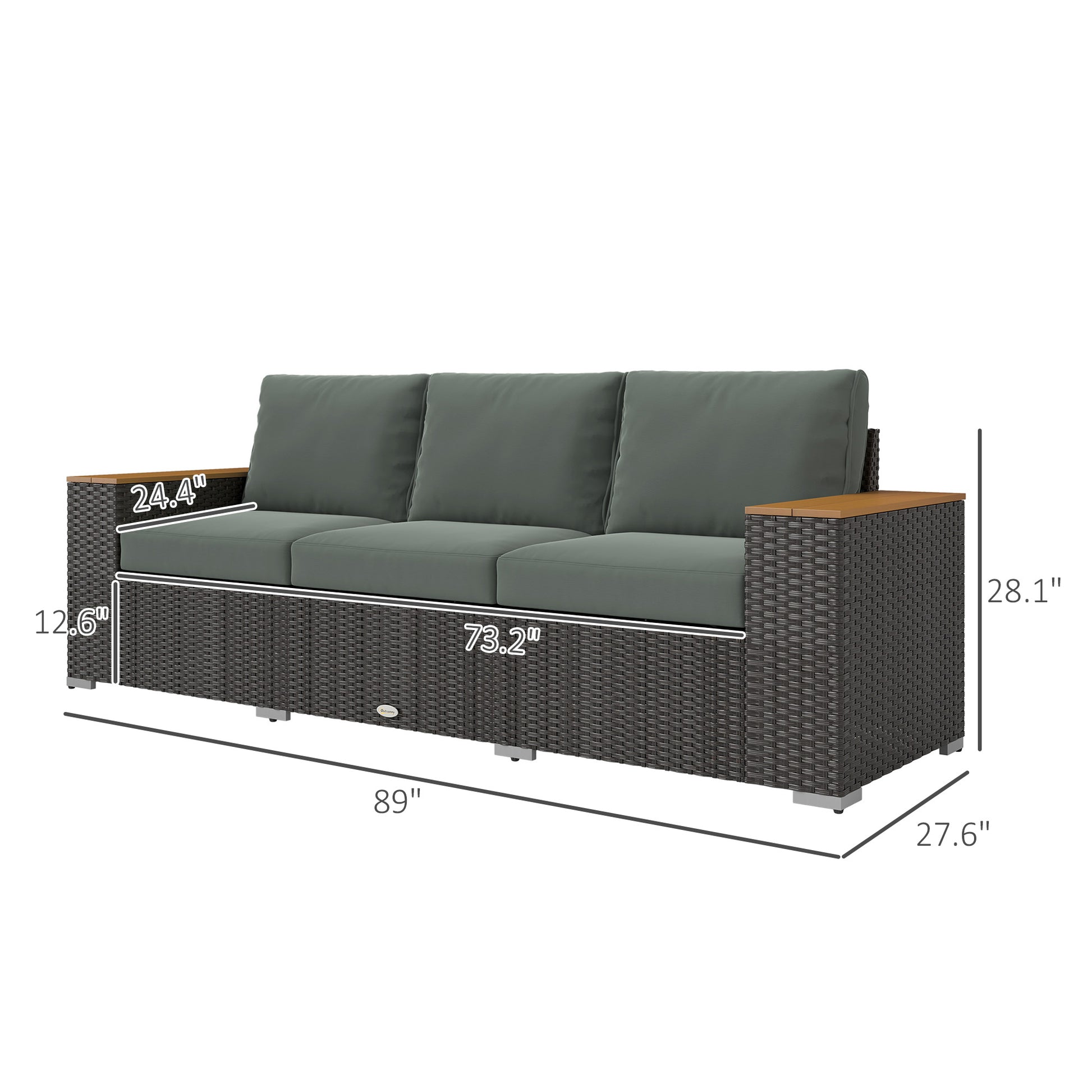 3-Seat Outdoor Patio Sofa With Cushions, PE Rattan Wicker Sofa With Wide Armrests, Outdoor Wicker Couch, Dark Gray