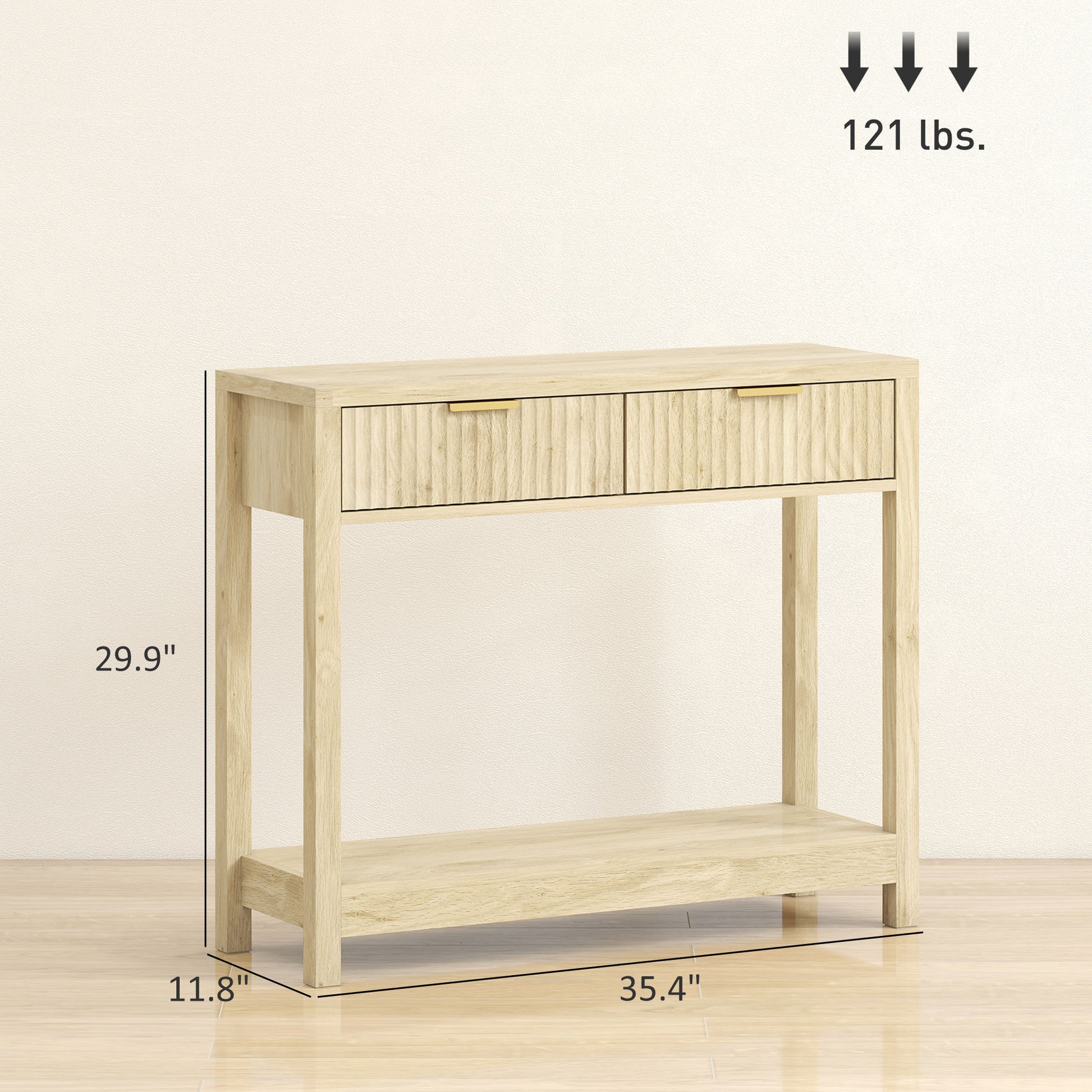 35" Console Table with Storage, Narrow Entryway Table with Fluted Panel Drawers and Shelf for Hallway, Natural