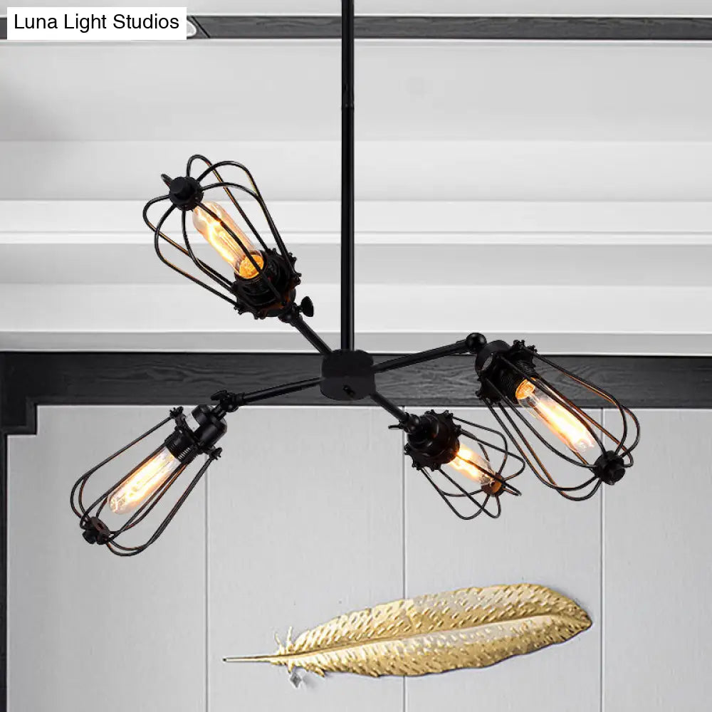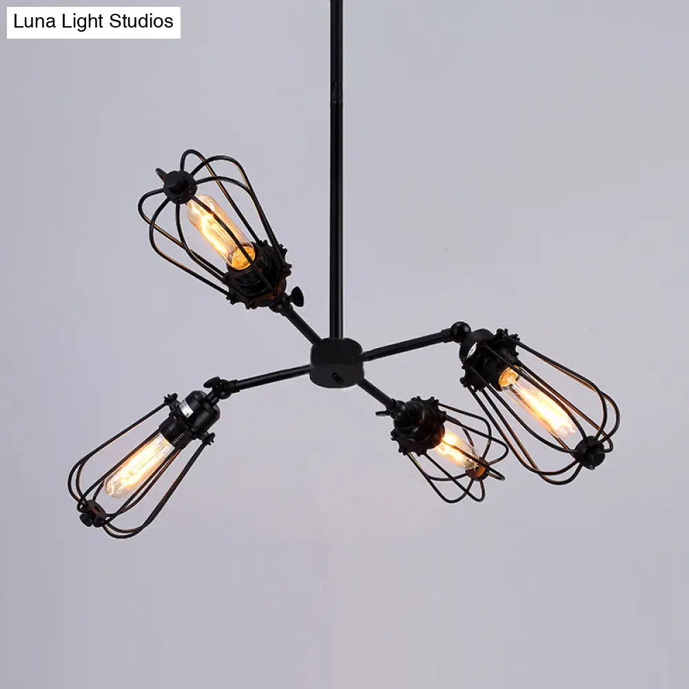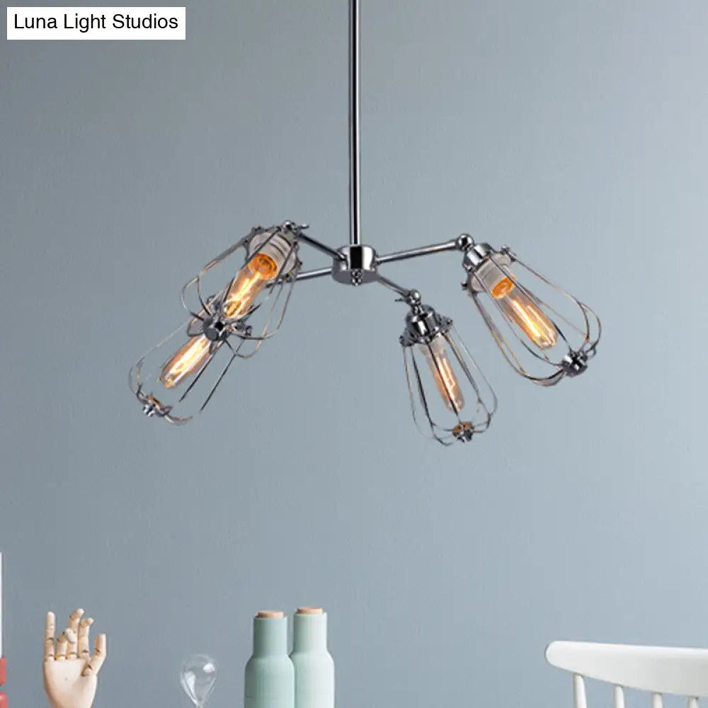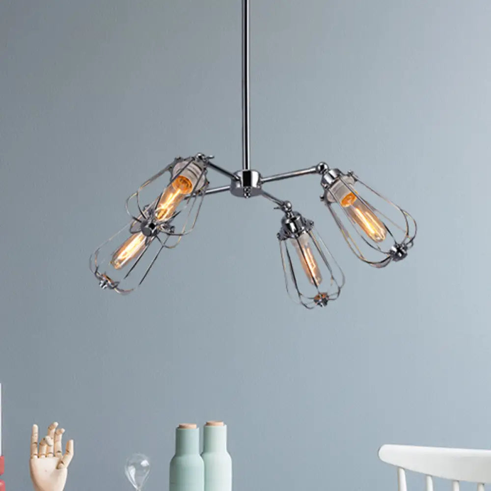ثريا المزرعة: مصباح معلق معدني بأربعة رؤوس بلمسة نهائية من الكروم/الأسود