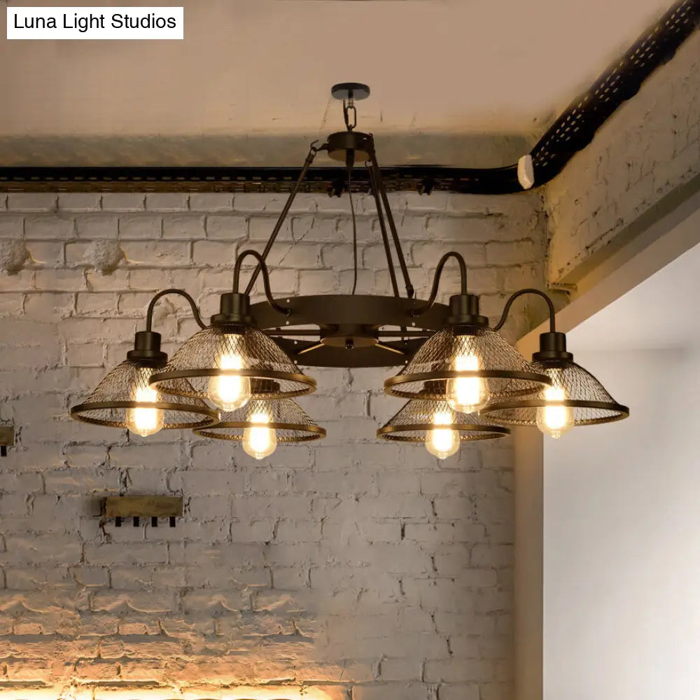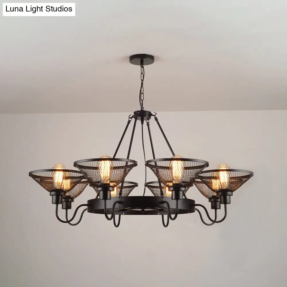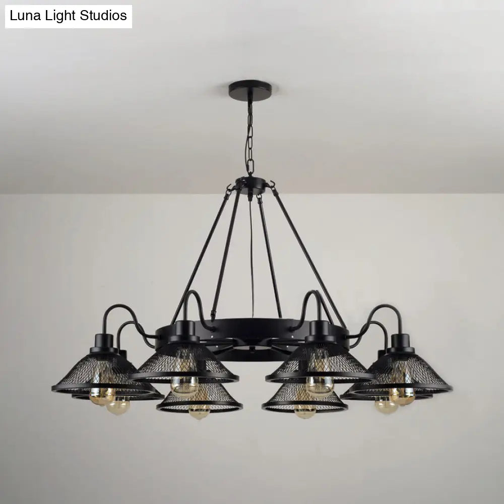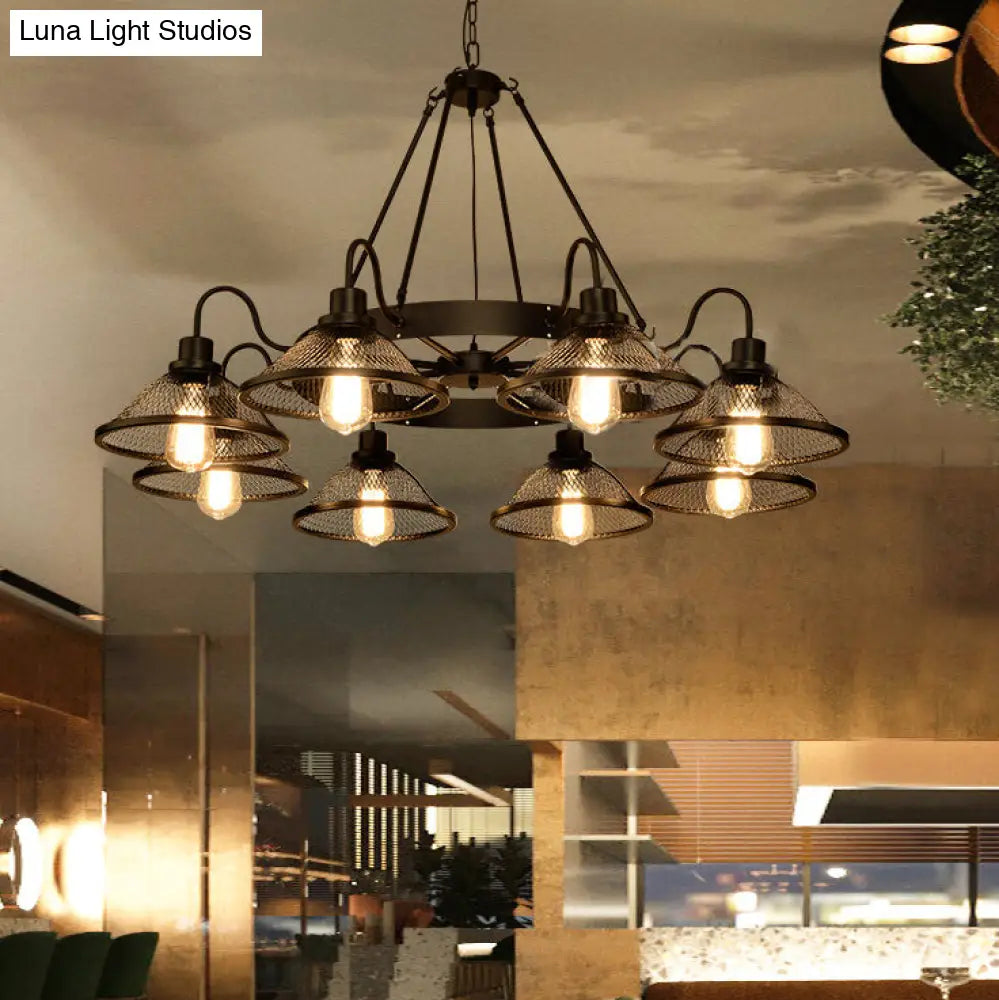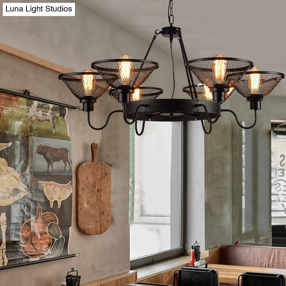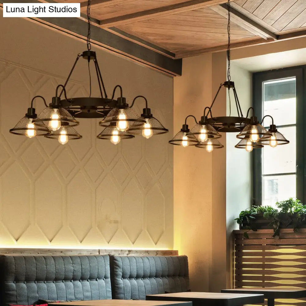 ثريا صناعية من شبكة سلكية سوداء - مصباح سقف متوهج 6/8 ضوء للمطعم