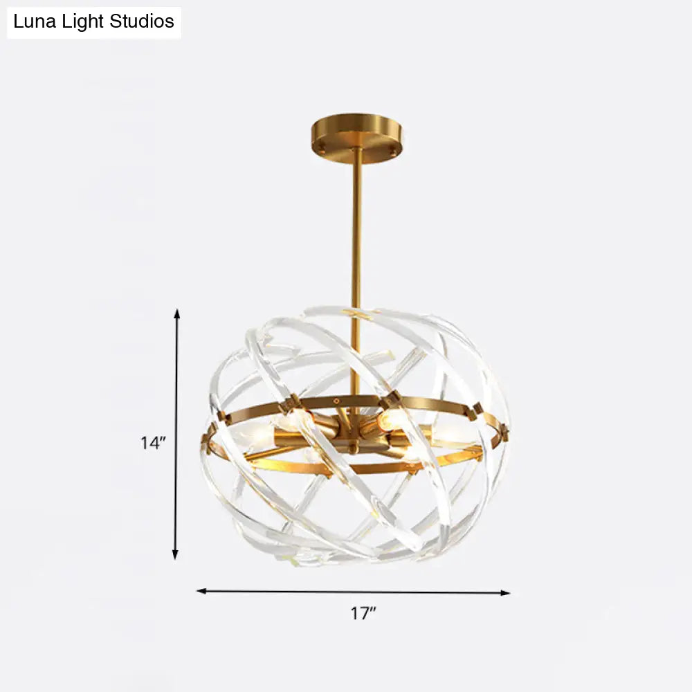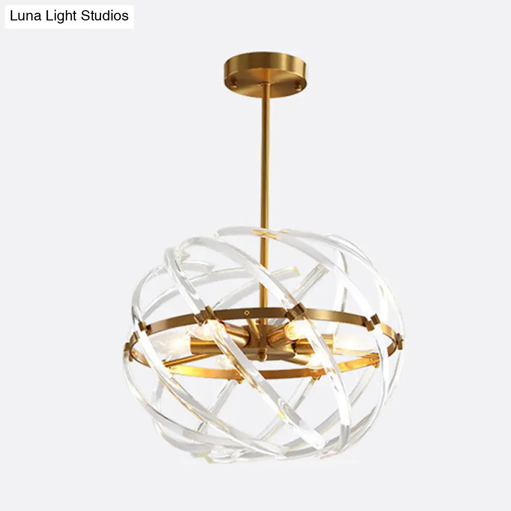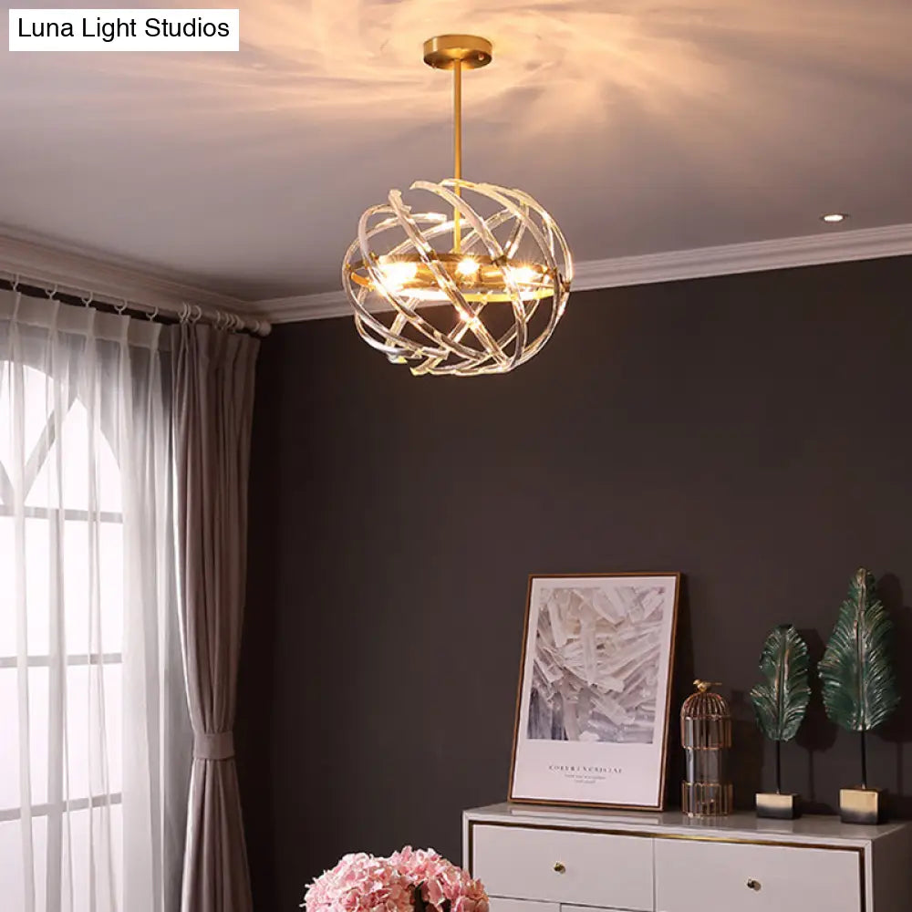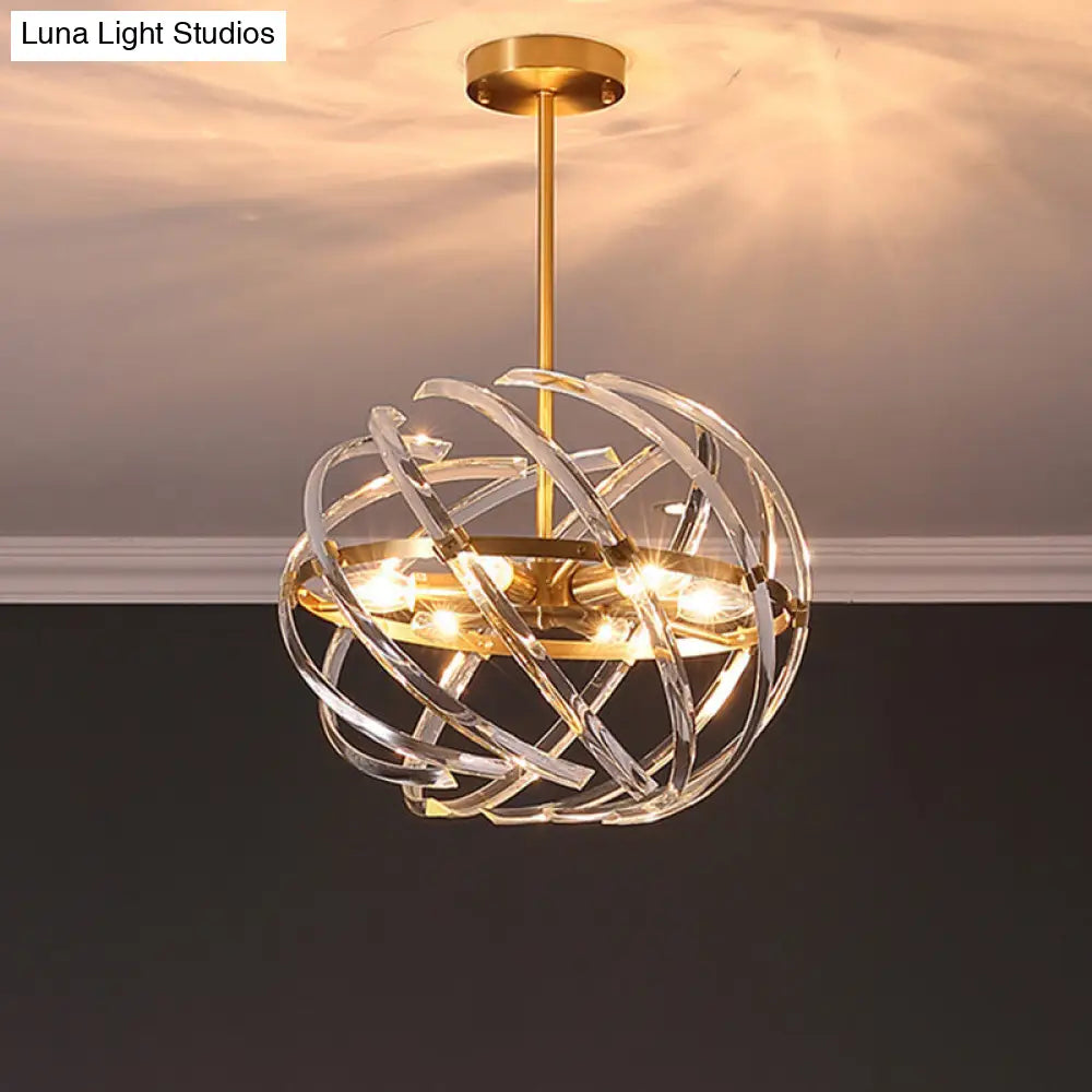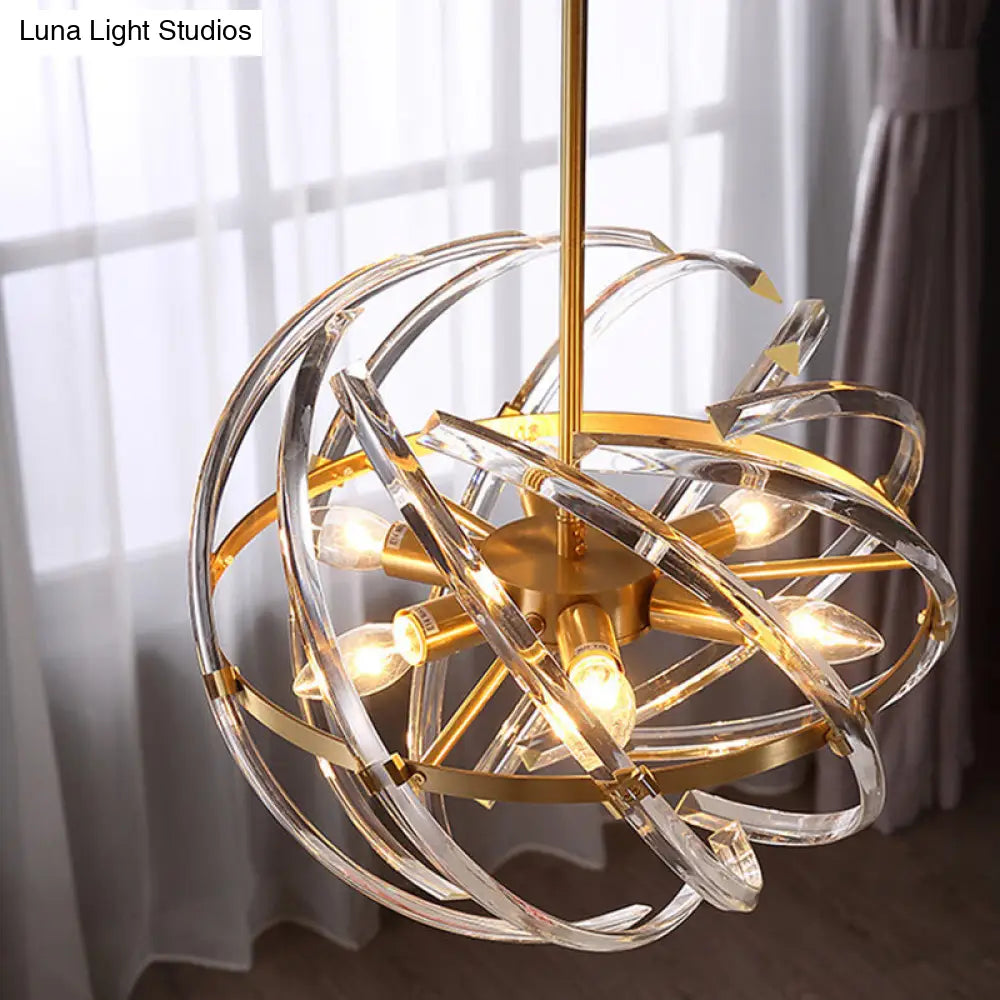 ثريا غرفة نوم بتصميم ما بعد الحداثة بستة رؤوس - إضاءة ذهبية أنيقة معلقة مع ظلال كريستالية منحنية