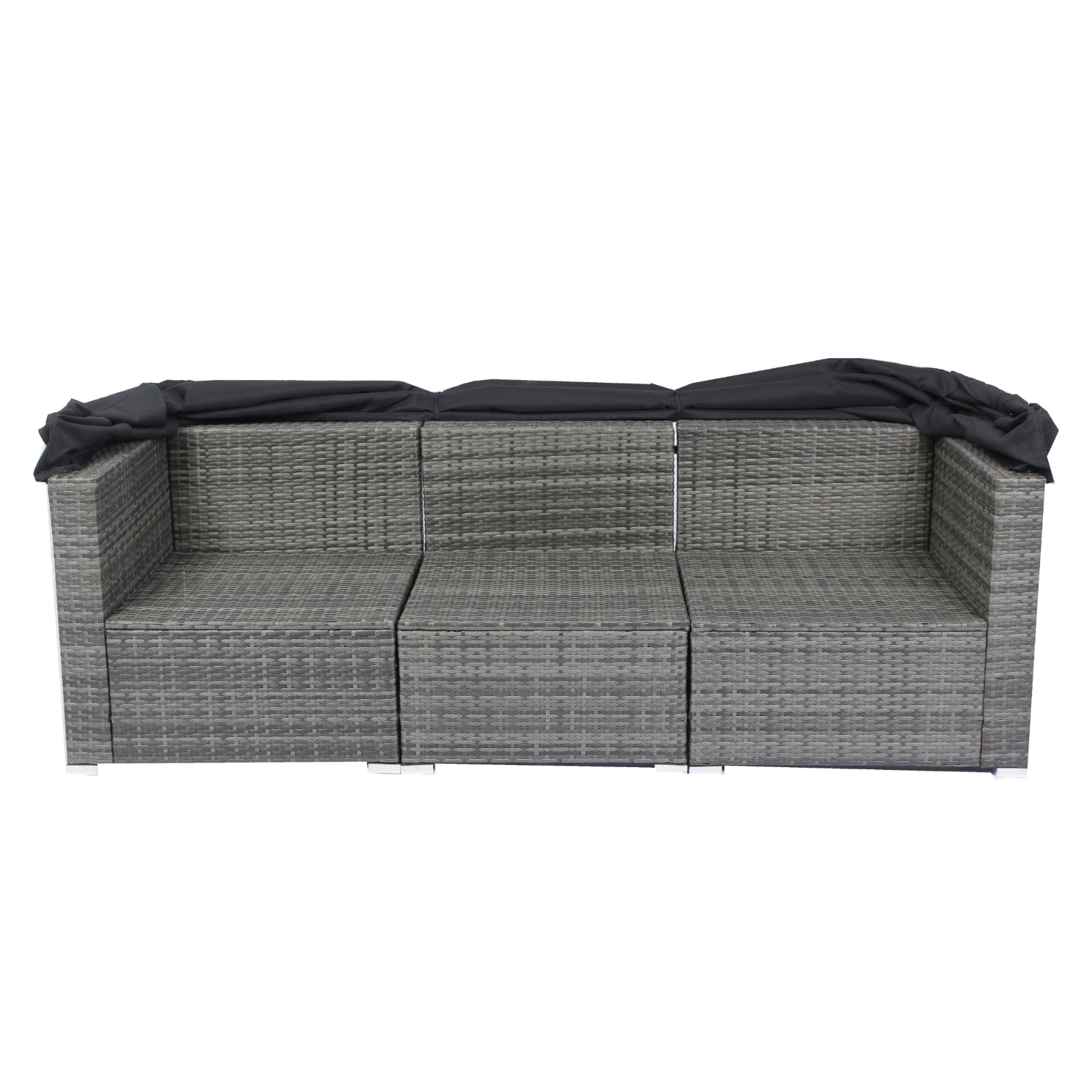 7-Piece Patio Furniture Set w/Retractable Canopy Wicker Rattan Sectional Sofa Set Patio Furniture with Washable Cushions for Lawn, Garden, Backyard, Poolside Grey wicker + Black Cushion