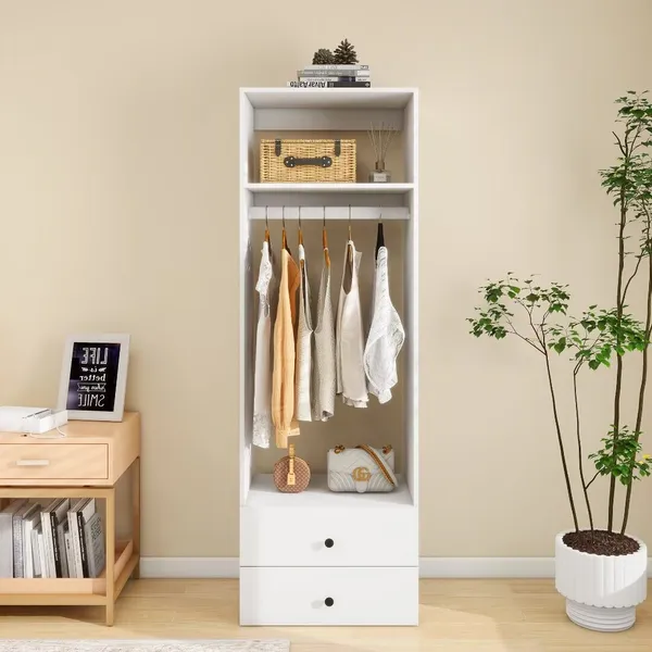 70.2"H Livelylodge Wooden Modular Closet Organizer:Modern Open Wardrobe Closet System With 2 Drawers For Bedroom&Coatroom White Finish
