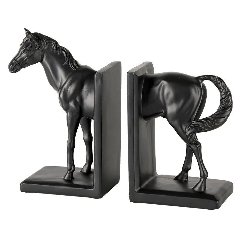 "ديكوربايتس™ تمثال حصان أسود من الراتنج، مناسب لديكور المنزل، ورفوف الكتب"