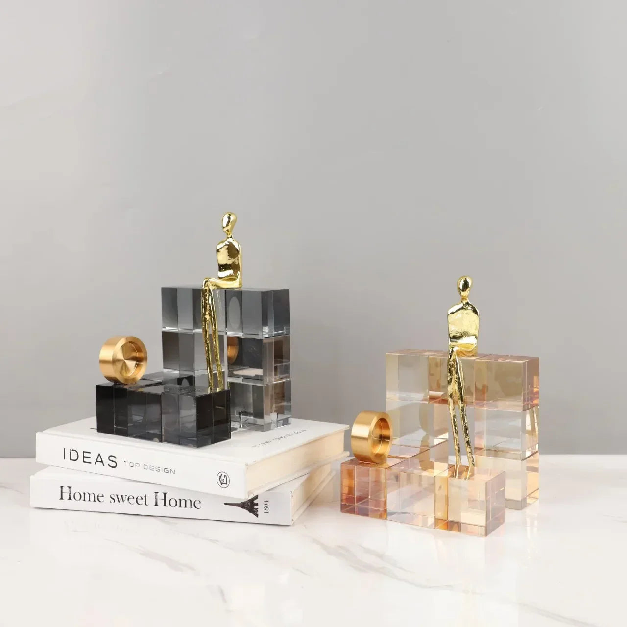 مستوحى من الأشكال الهندسية والفنية، يتميز هذا التمثال الفريد بتفاصيل دقيقة تجذب الضوء وتُضفي عليه لمسةً مبهرة. تضفي لمسات المعدن الذهبي لمسةً من الفخامة والرقي على التصميم، مما يجعله محط أنظار أي غرفة.