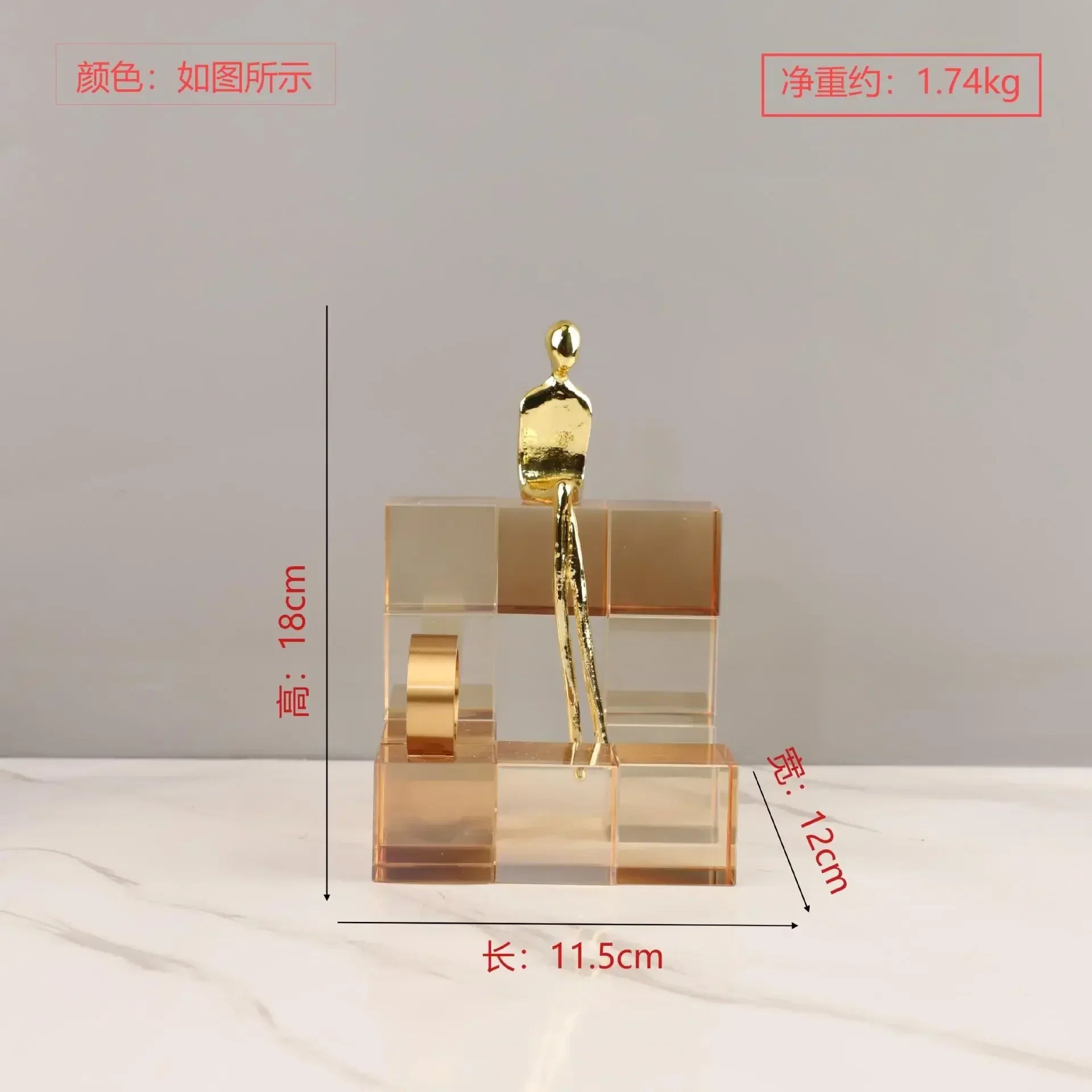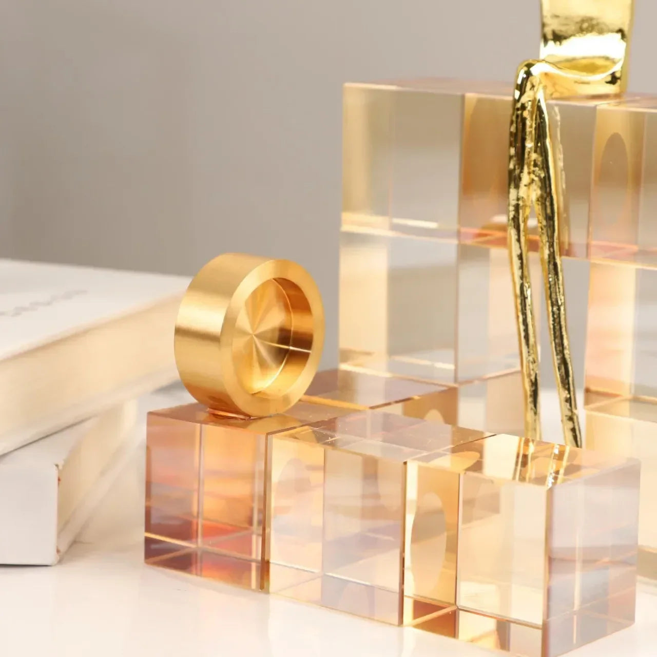 ديكوربايتس™ - زينة درج هندسية من الكريستال، منحوتة معدنية ذهبية