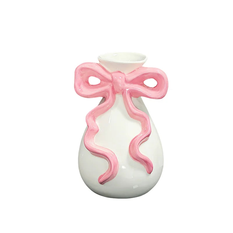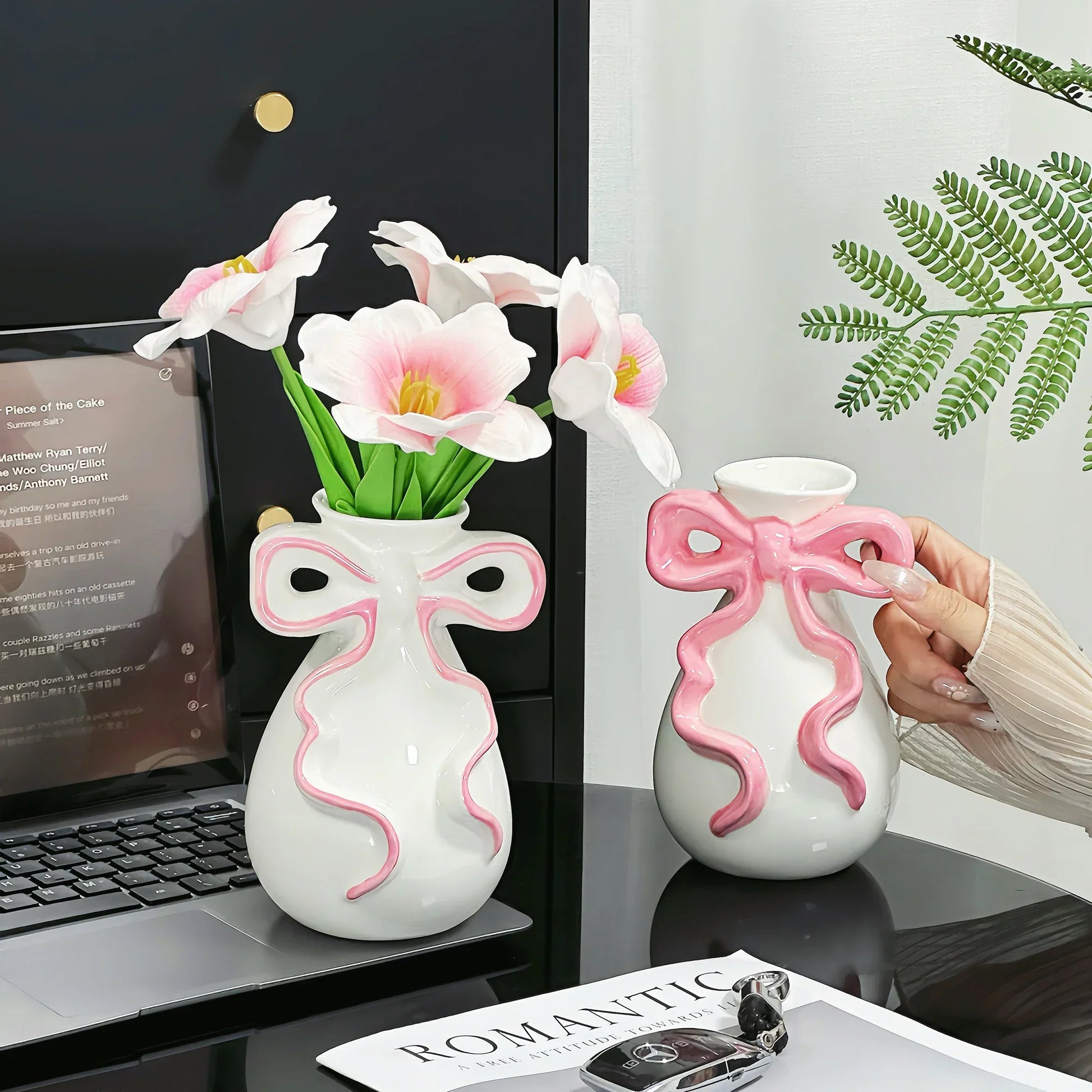 مزهرية سيراميك ثلاثية الأبعاد من DecorBites™ مع فيونكة لطيفة - ديكور منزلي زهري