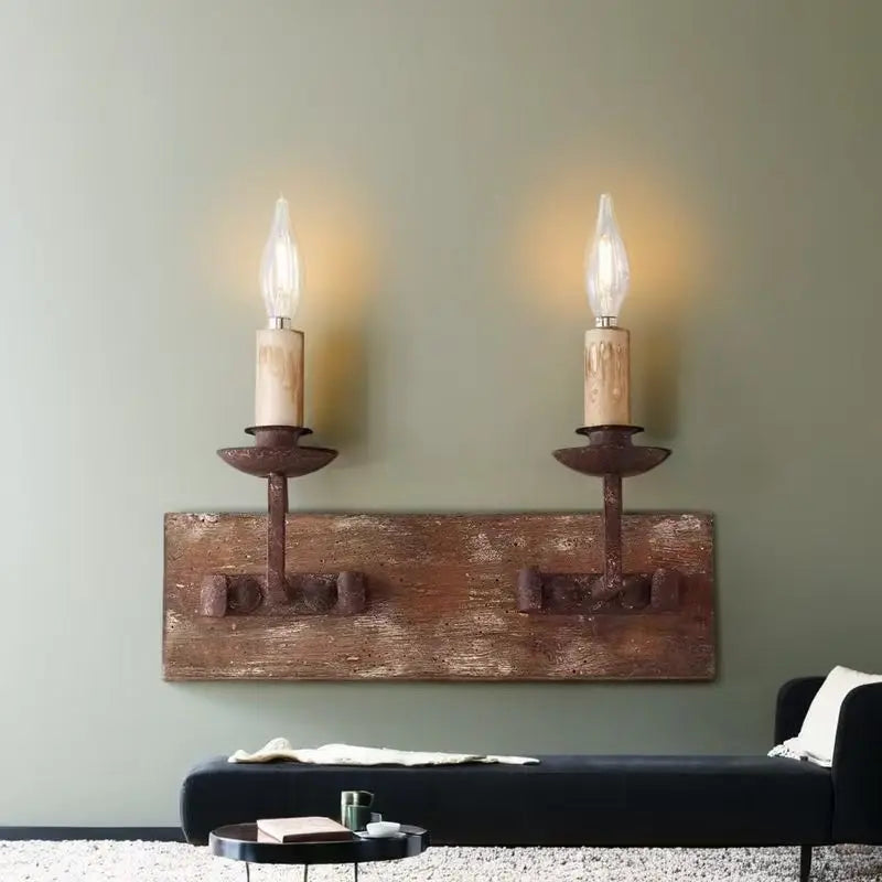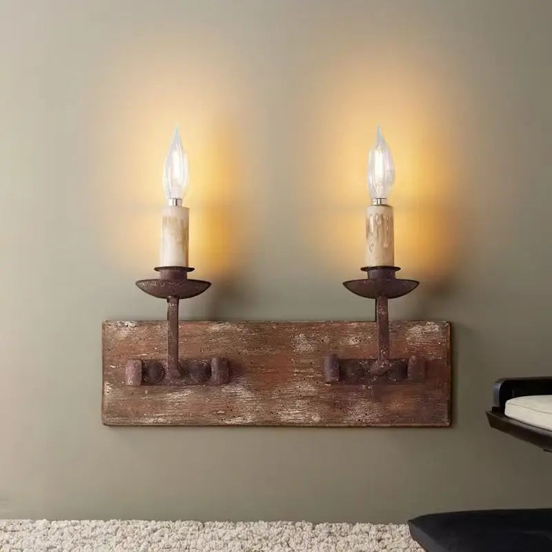 ديكوربايتس™ مصباح حائط ريفي عتيق من الخشب الصلب لغرفة النوم وغرفة المعيشة، إضاءة إبداعية