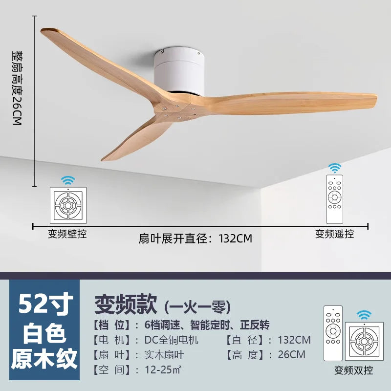 مروحة سقف فاخرة مصقولة من DecorBites™ مقاس 52 بوصة بمحرك تيار مستمر، 3 شفرات خشبية، جهاز تحكم عن بعد