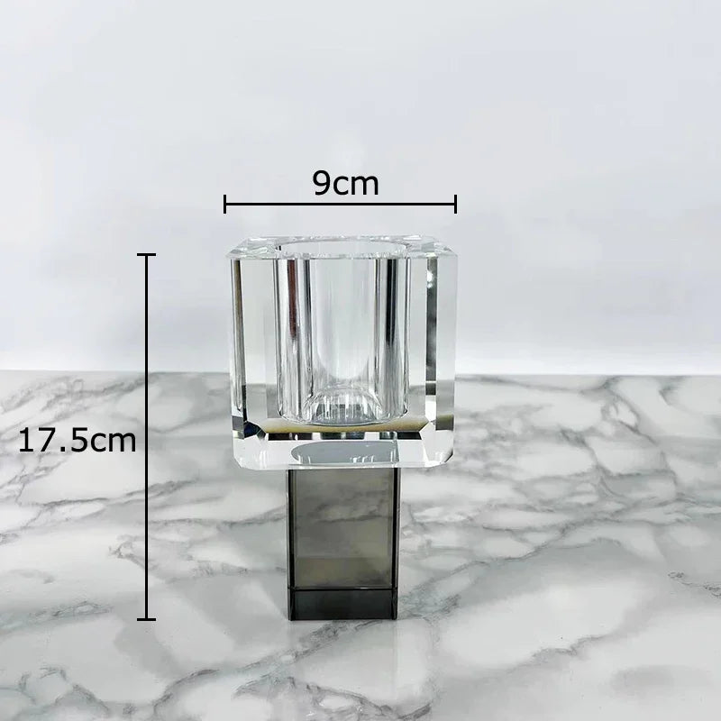 مزهرية زجاجية مربعة هندسية من ديكور بايتس™، زهور صناعية، تنسيق زهور عصري
