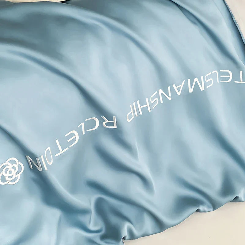 مصنوع من قماش قطني 100% بنمط منسوج من الساتان، يتميز طقم الفراش هذا بملمس ناعم ولطيف على البشرة. يتضمن الطقم غطاء لحاف، وغطائي وسادة، وملاءة سرير واحدة، مما يوفر حلاً متكاملاً لغرفة نومك.