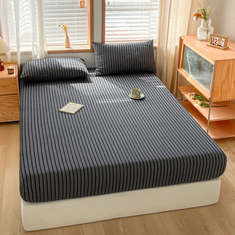 نقدم لكم ملاءة ديكوربايتس القطنية المخططة، إضافة فاخرة لمجموعة أغطية السرير الخاصة بكم. مصنوعة من أجود أنواع القطن 100%، توفر هذه الملاءة المريحة شعورًا بالراحة والدفء لنوم هانئ.