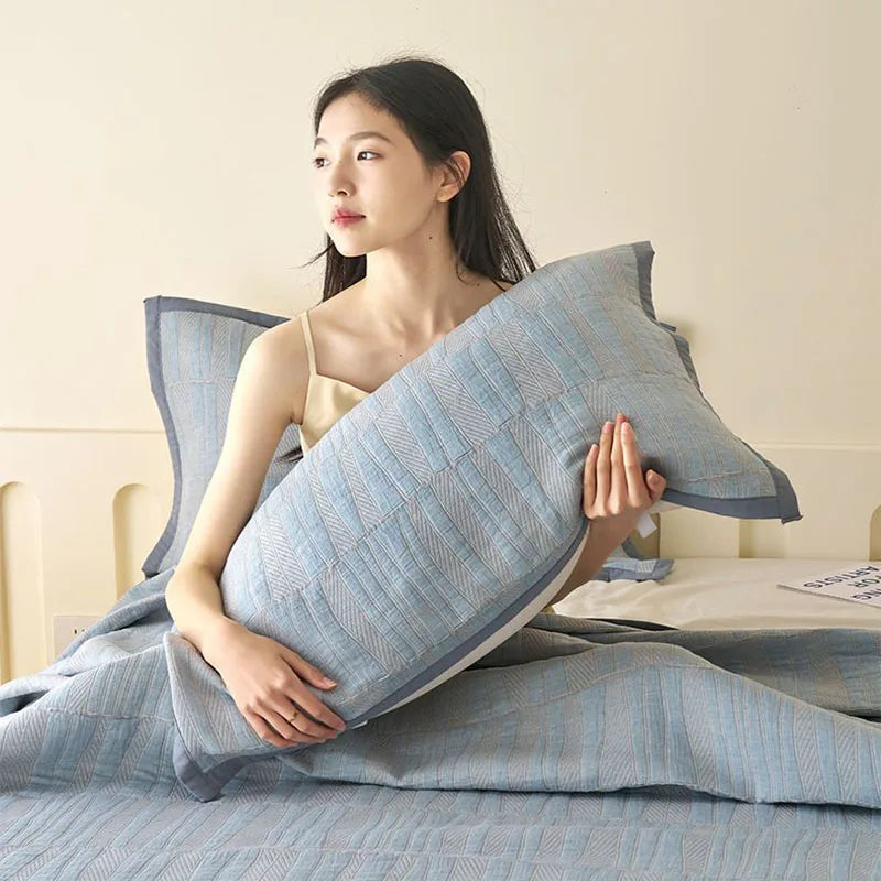 نقدم لكم بطانية منشفة ثلاثية الطبقات من القطن مع وسادة - لحاف صيفي رائع من Decorbites، وهي ضرورية للبالغين الذين يبحثون عن الراحة والأناقة خلال موسم الصيف.
