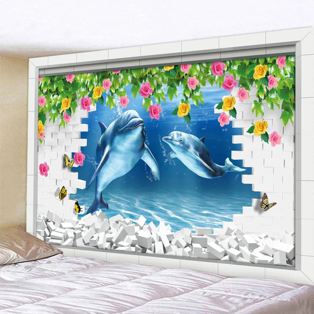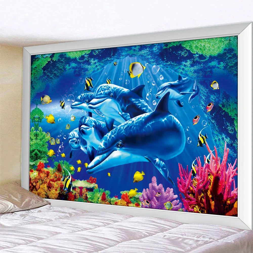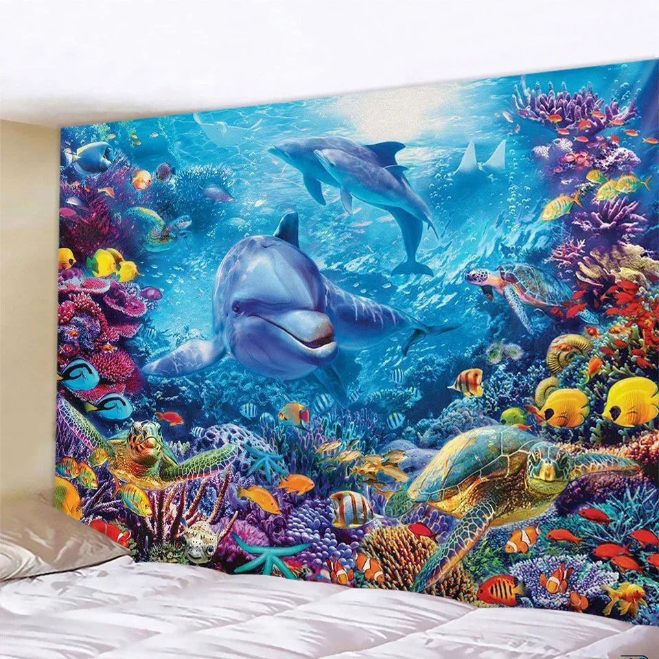 ديكور بايتس™ بساط يوغا ماندالا ثلاثي الأبعاد لعالم ما تحت الماء، ديكور منزلي، نسيج أريكة هيبي، بطانية