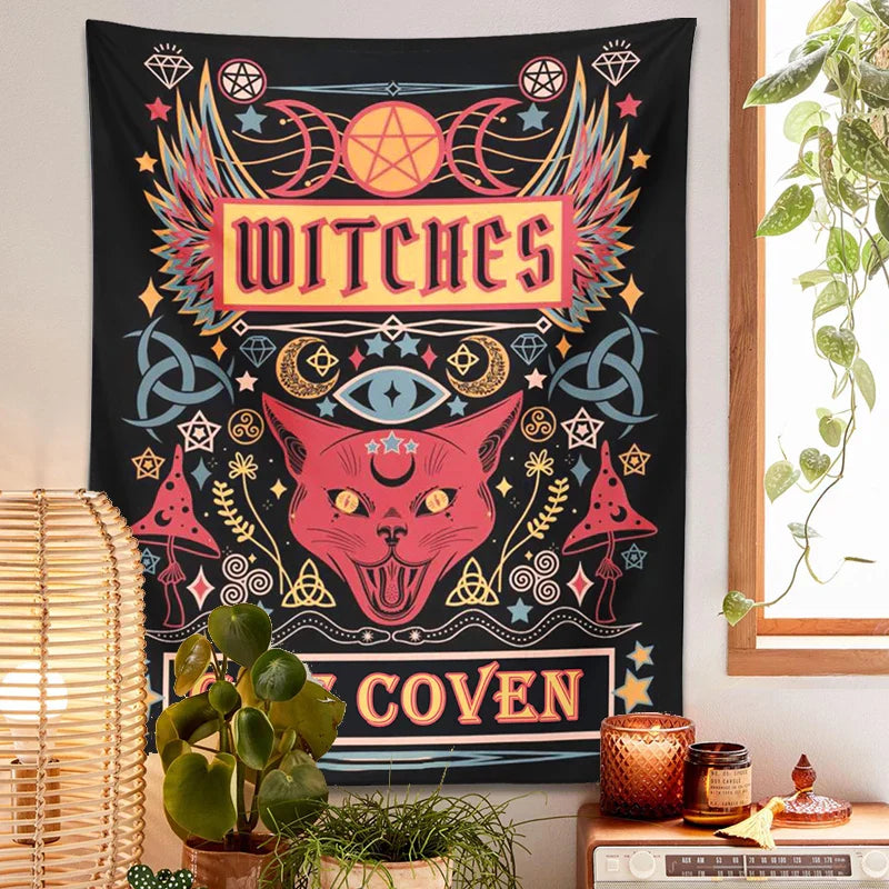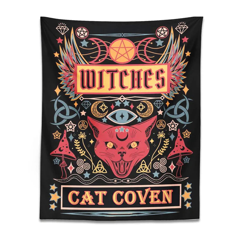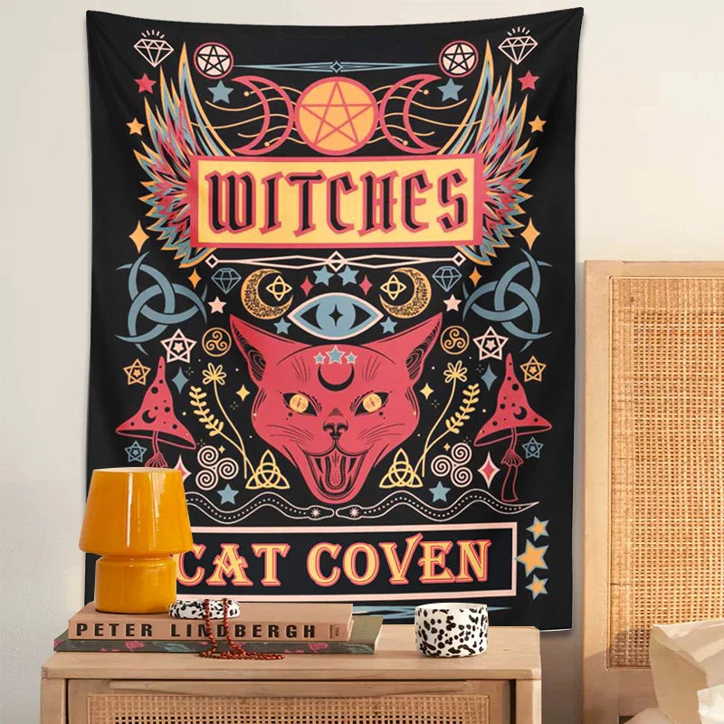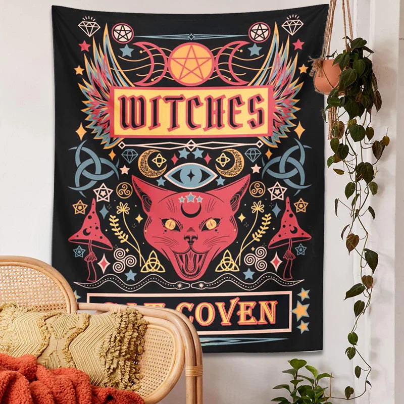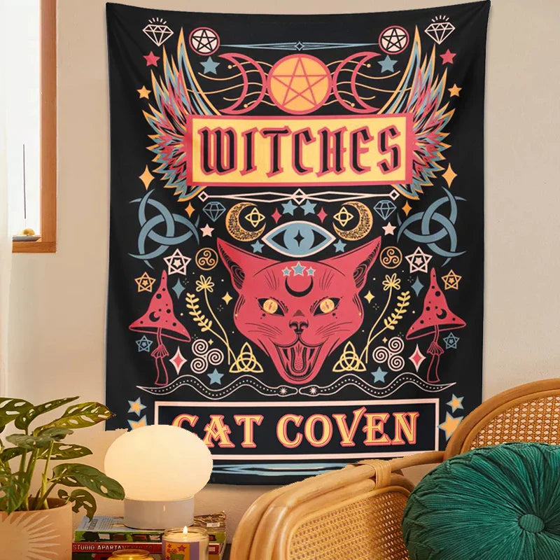 ديكور بايتس™ نسيج سحر القطط: عرافة الفطر في التارو للشمس والقمر لديكور المنزل