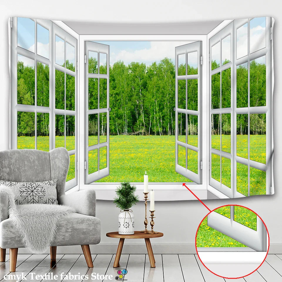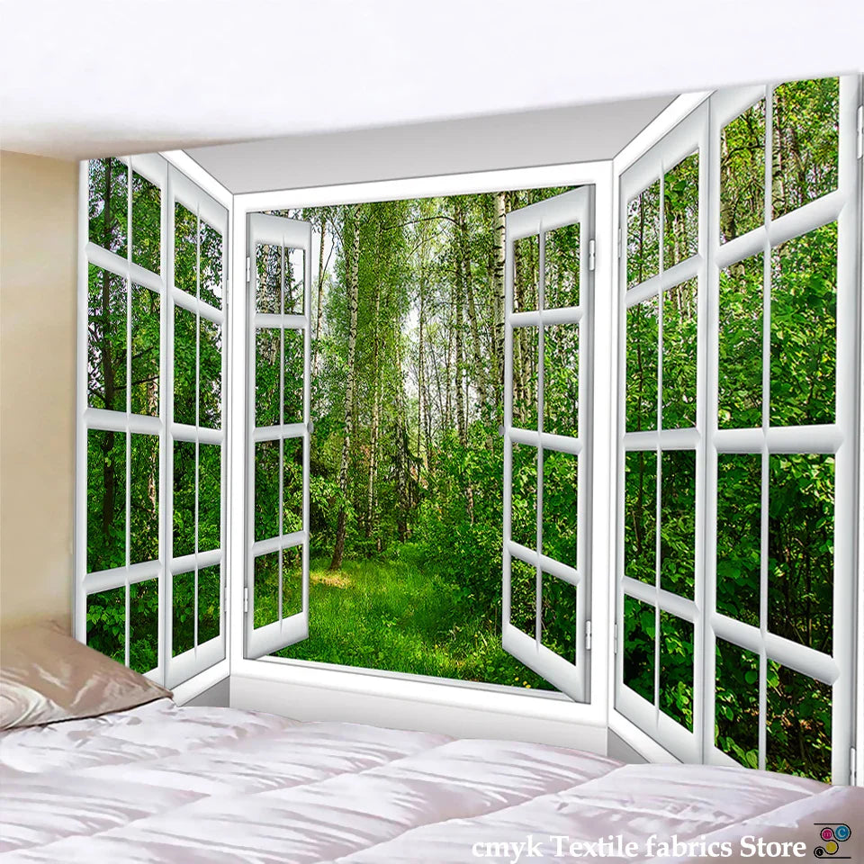 ديكور بايتس™ ثلاثي الأبعاد، نافذة، منظر طبيعي، نسيج جداري، ديكور منزلي على الطراز الاسكندنافي