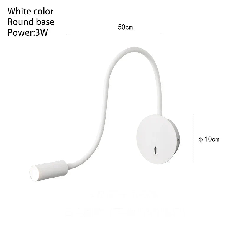 DecorBites™ مصباح حائط LED 3 وات مزود بمفتاح تشغيل/إيقاف، مصباح قراءة مكتبي مرن
