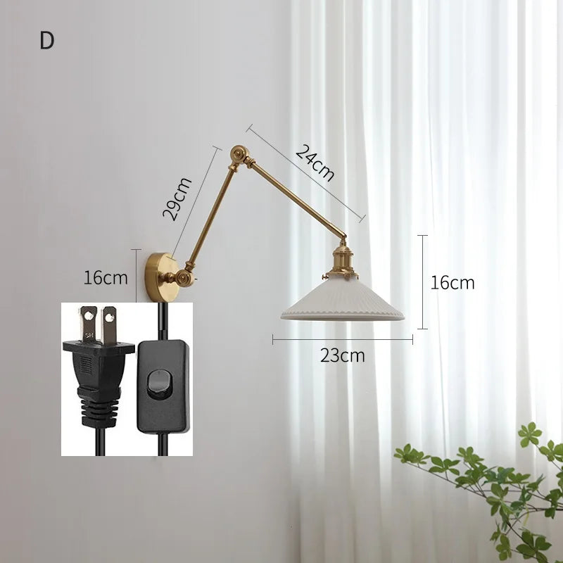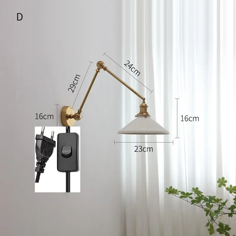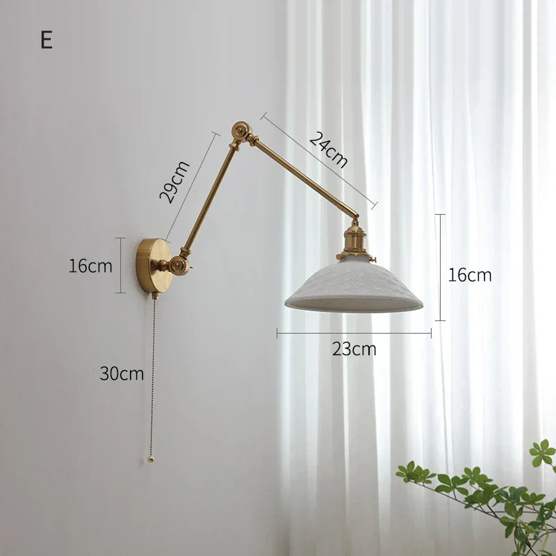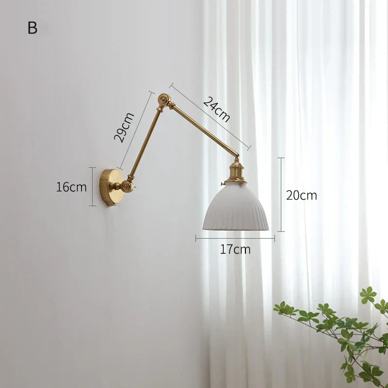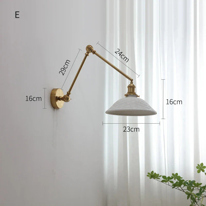ديكوربايتس™ مصابيح حائط نحاسية متأرجحة مع ذراع تثبيت لأعلى ولأسفل وغطاء مصباح LED سيراميكي عصري