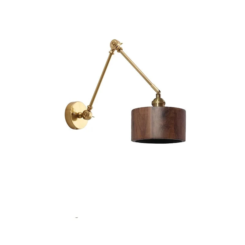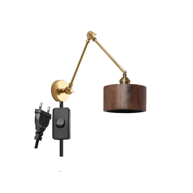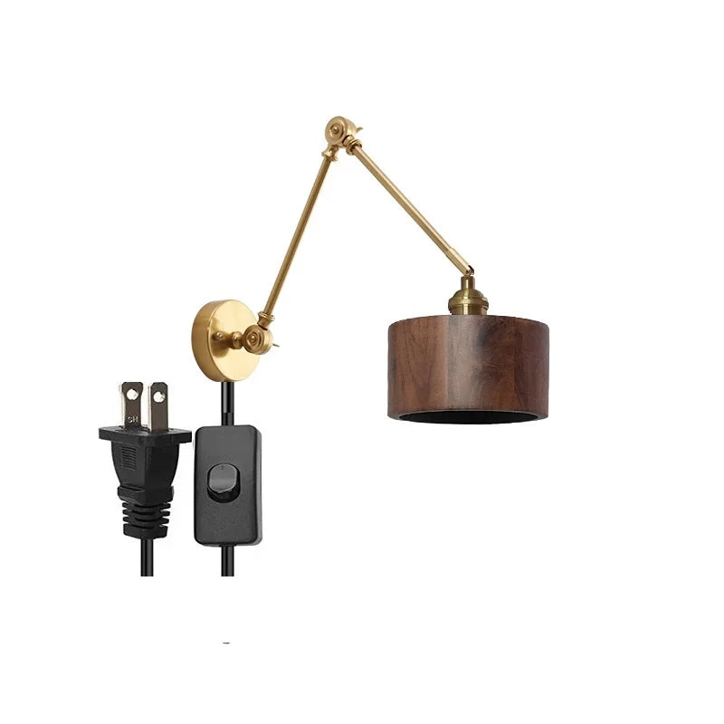 DecorBites™ مصباح حائط LED بذراع دوارة نحاسية مع مفتاح سلسلة سحب، مصباح خشبي نورديك عصري