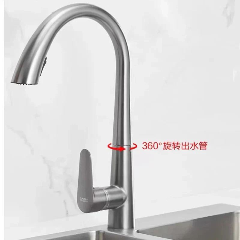 صنبور مطبخ أسود بمقبض واحد قابل للسحب من DecorBites™، صنبور خلاط مياه دوار بزاوية 360 درجة