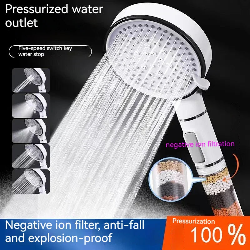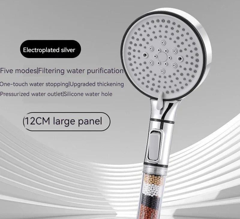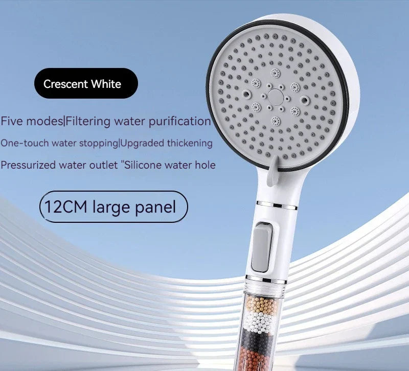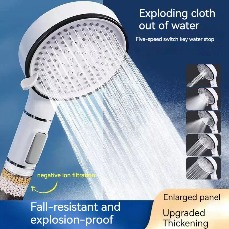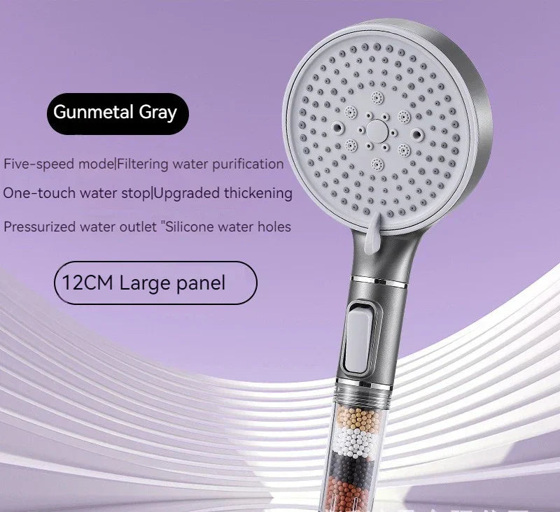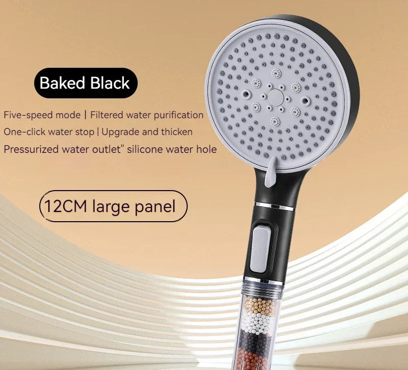 نقدم لك رأس دش كبريتيت الكالسيوم عالي الضغط بخمس سرعات، والذي تم تصميمه للتطهير والاسترخاء في روتين الاستحمام اليومي الخاص بك.