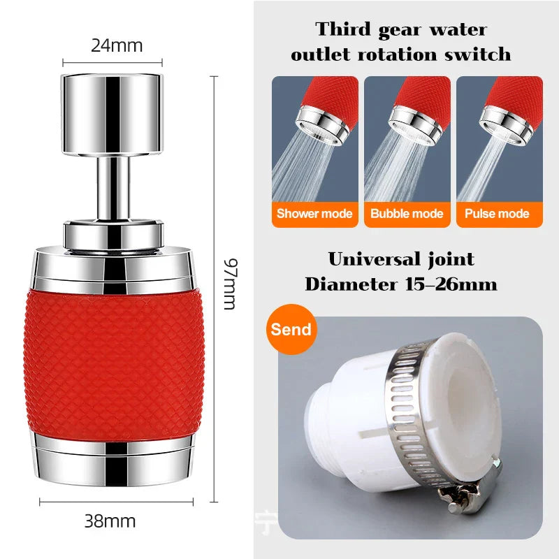 ديكوربايتس™، مهوية صنبور مطبخ من الألومنيوم بثلاثة أوضاع | فلتر فوهة موفر للمياه بزاوية 360 درجة