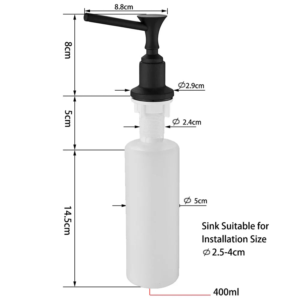 موزع صابون سائل للمطبخ أسود من ديكوربايتس™ سعة 400 مل - زجاجة بديلة للحوض