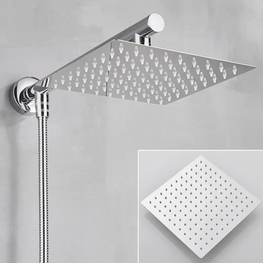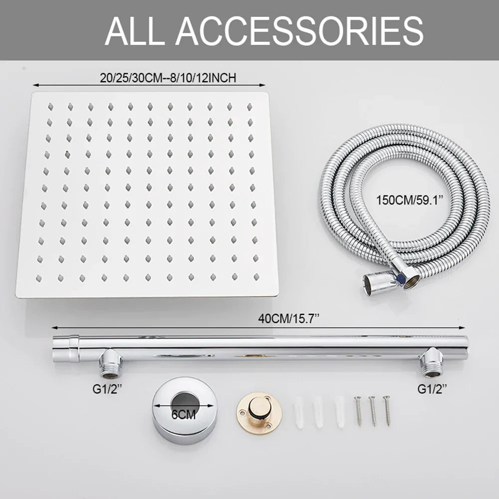 تتضمن المجموعة رأس دش، وذراعًا، وخرطومًا من الفولاذ المقاوم للصدأ، جميعها مصنوعة من مادة نحاسية متينة لأداء يدوم طويلًا. اختر من بين مقاسات 8 أو 10 أو 12 بوصة لتناسب تفضيلاتك وحجم حمامك.