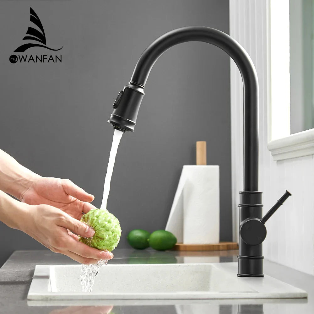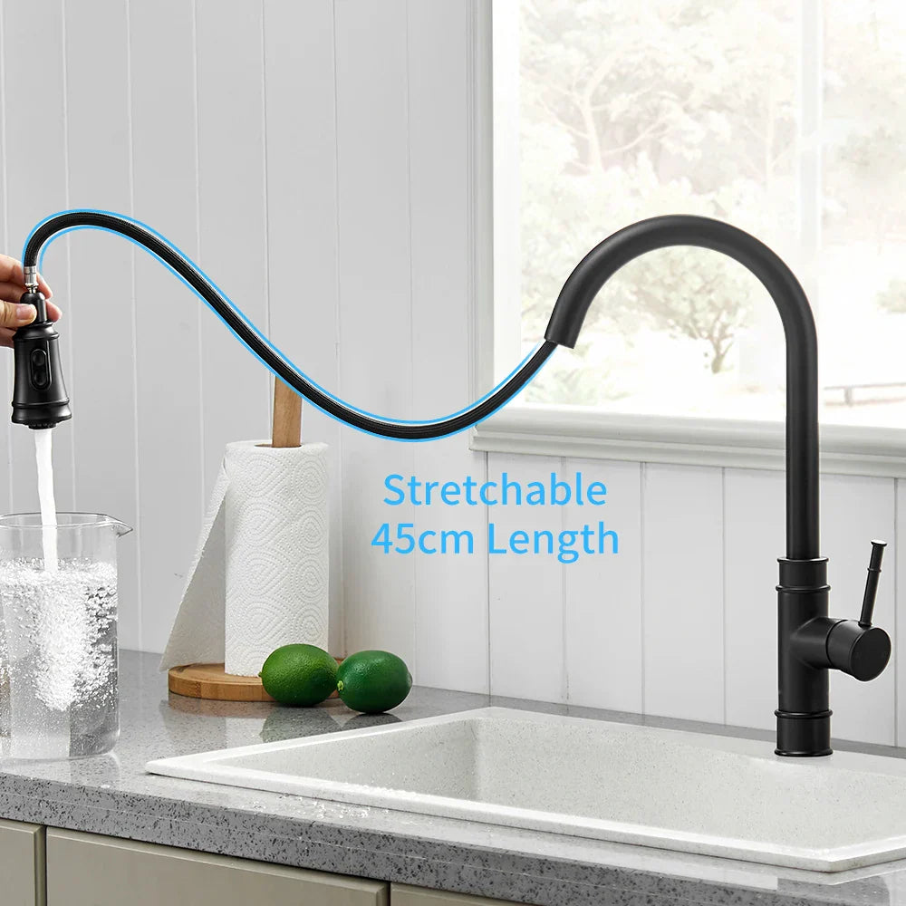 صُنع هذا الصنبور من نحاس عالي الجودة، ويتميز بلمسة نهائية سوداء أنيقة تُضفي لمسة من الأناقة على مساحتك. يتيح الفوهة القابلة للسحب سهولة في المناورة، بينما يُتيح تصميم المقبض الواحد تحكمًا سلسًا في درجة حرارة الماء وتدفقه.