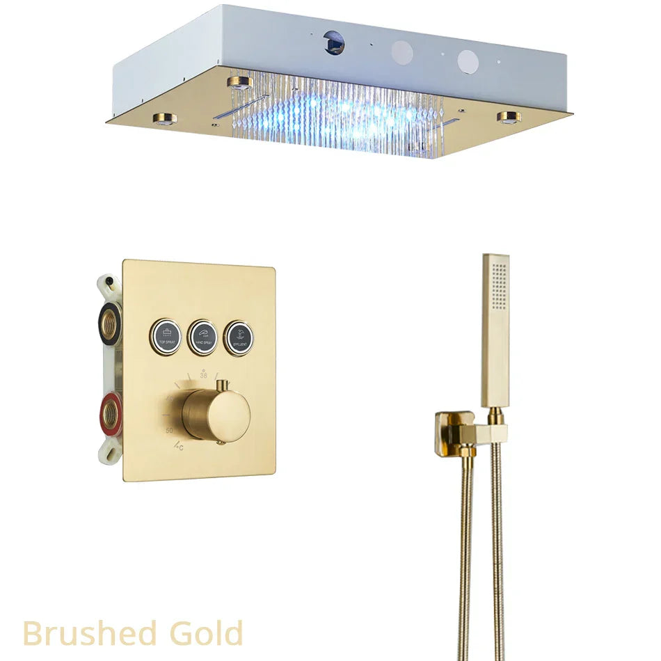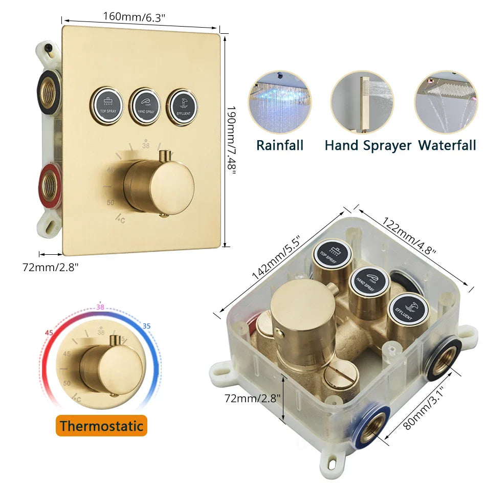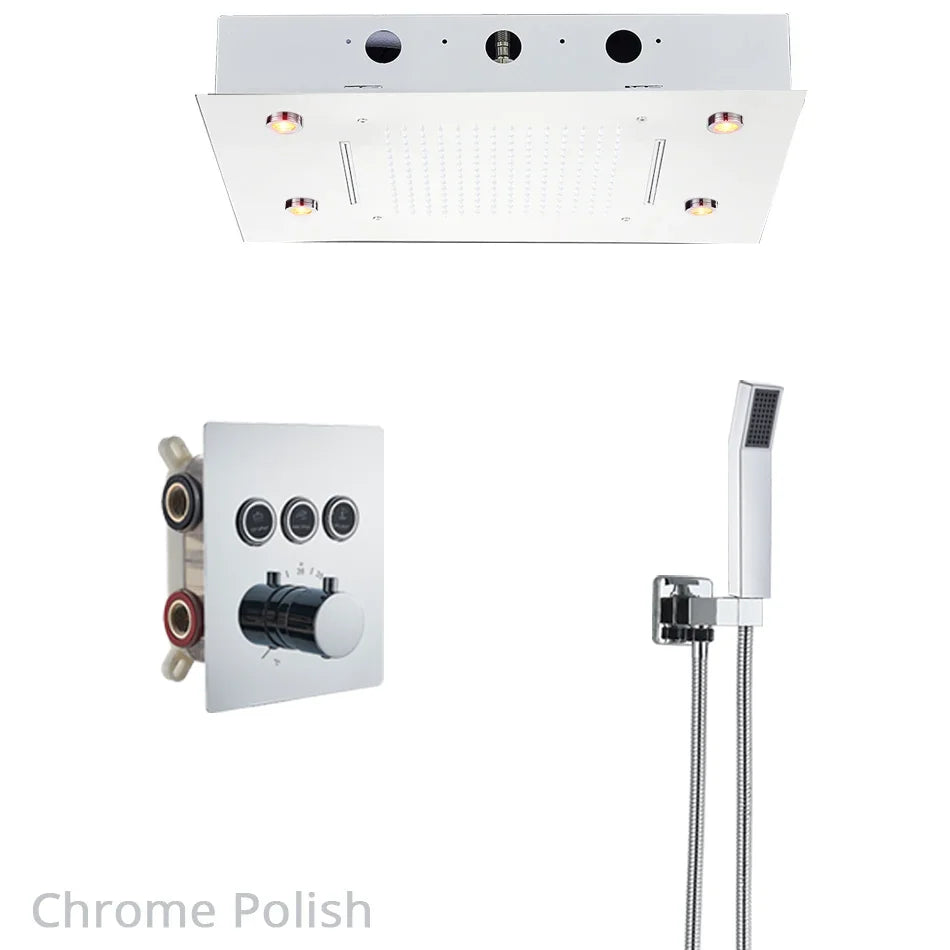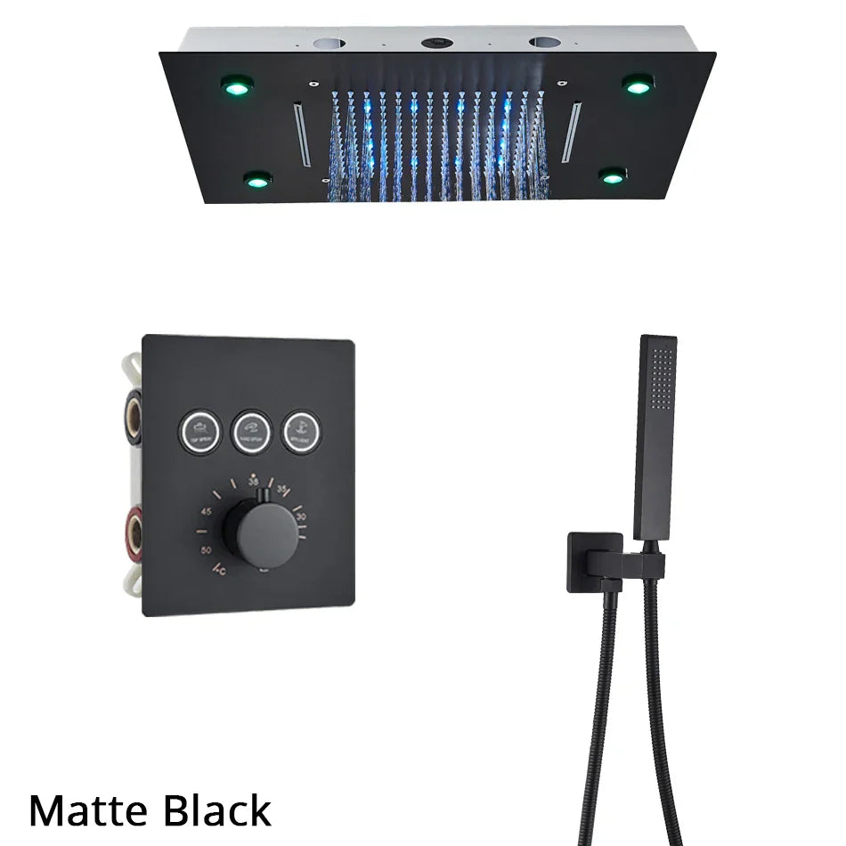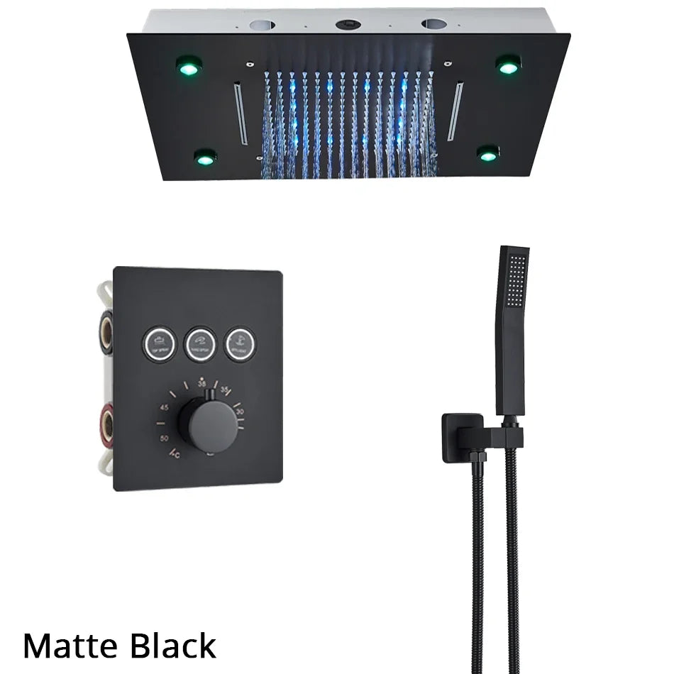 استمتع براحة صنابير الترموستات والتحكم السهل في درجة الحرارة مع نظام الدش. مع وضع التحكم بالإضاءة عن بُعد، يمكنك بسهولة ضبط الإعدادات لخلق بيئة استحمام مثالية.