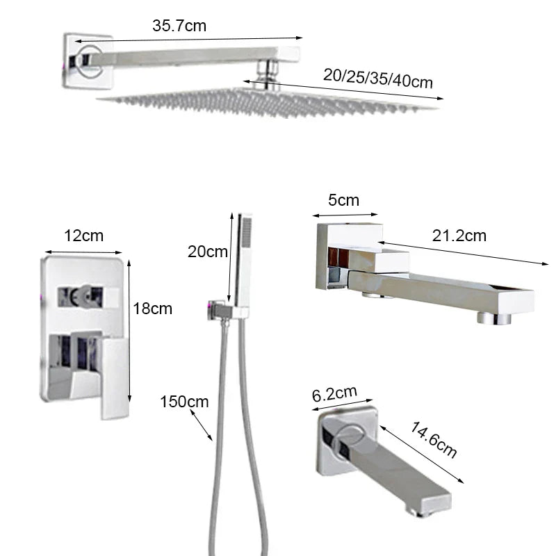 أبرز ما يميز طقم صنابير الدش هذا هو رأس الدش المطري مقاس 16 بوصة، الذي يوفر أمطارًا غزيرة لتجربة استحمام فاخرة. إضافة دش يدوي وفوهة نحاسية تُضفي تنوعًا ووظائف متعددة على الطقم، مما يجعله خيارًا عمليًا لأي حمام عصري.