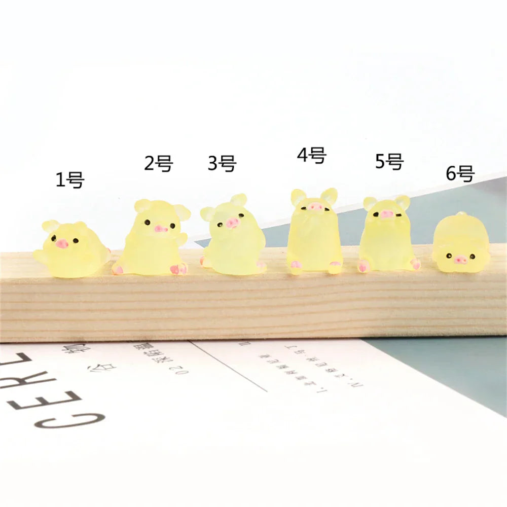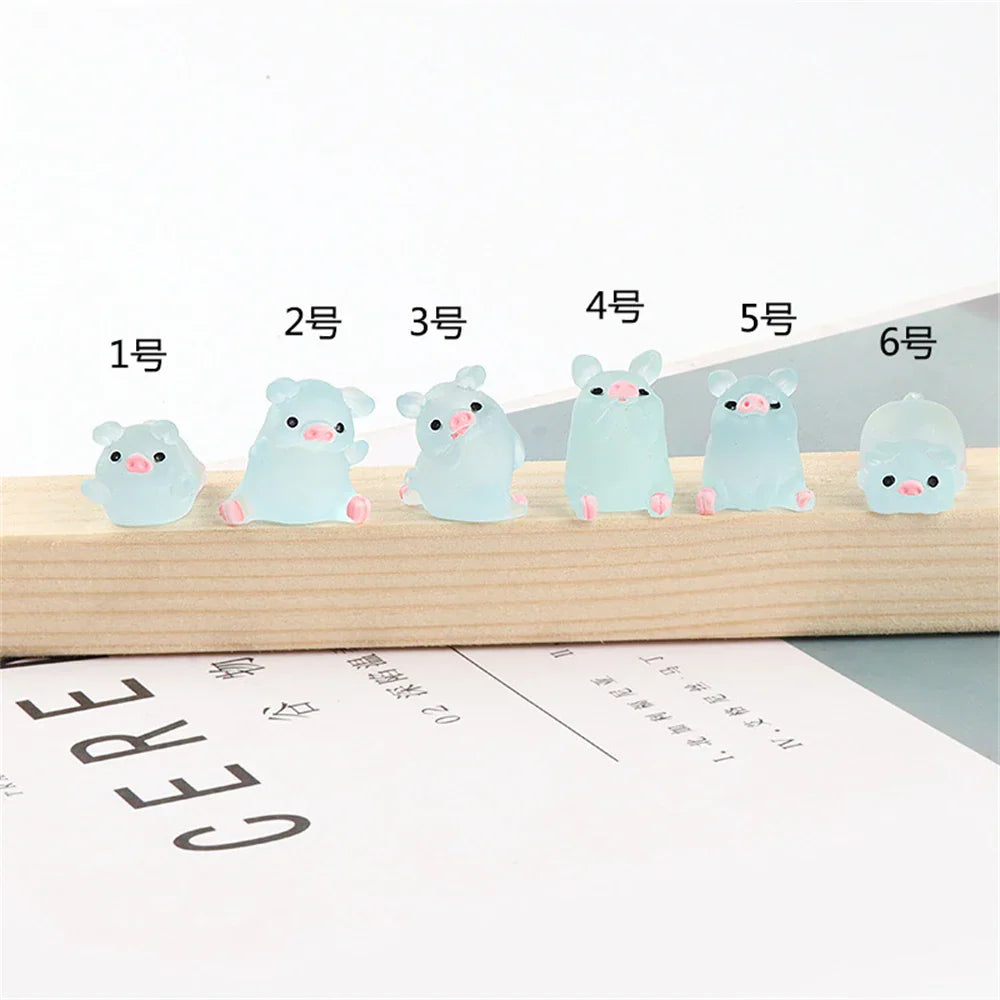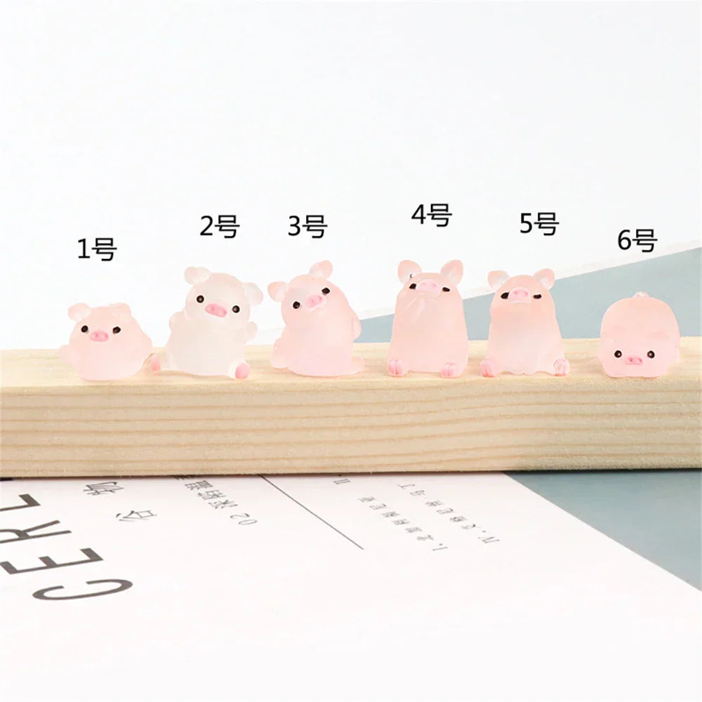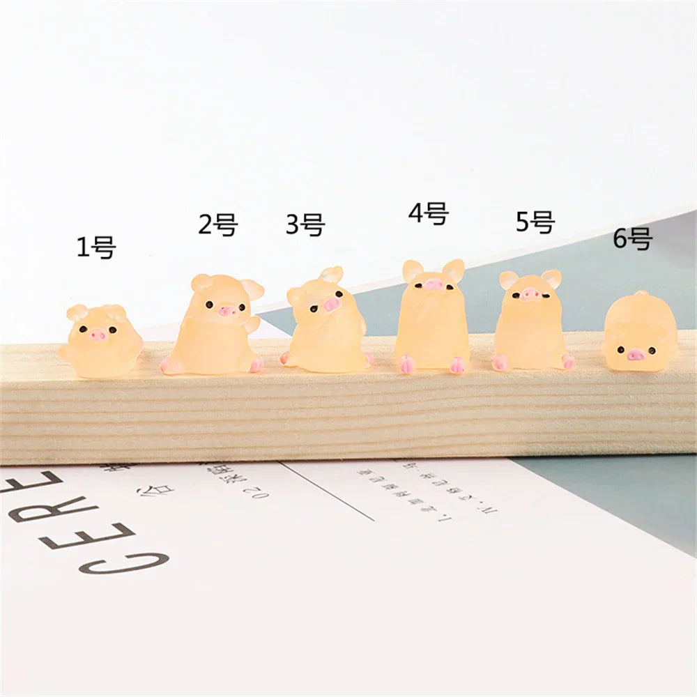 ديكور بايتس™ - تماثيل صغيرة على شكل خنزير كاواي - 6 قطع - حرف يدوية - ديكور منزلي