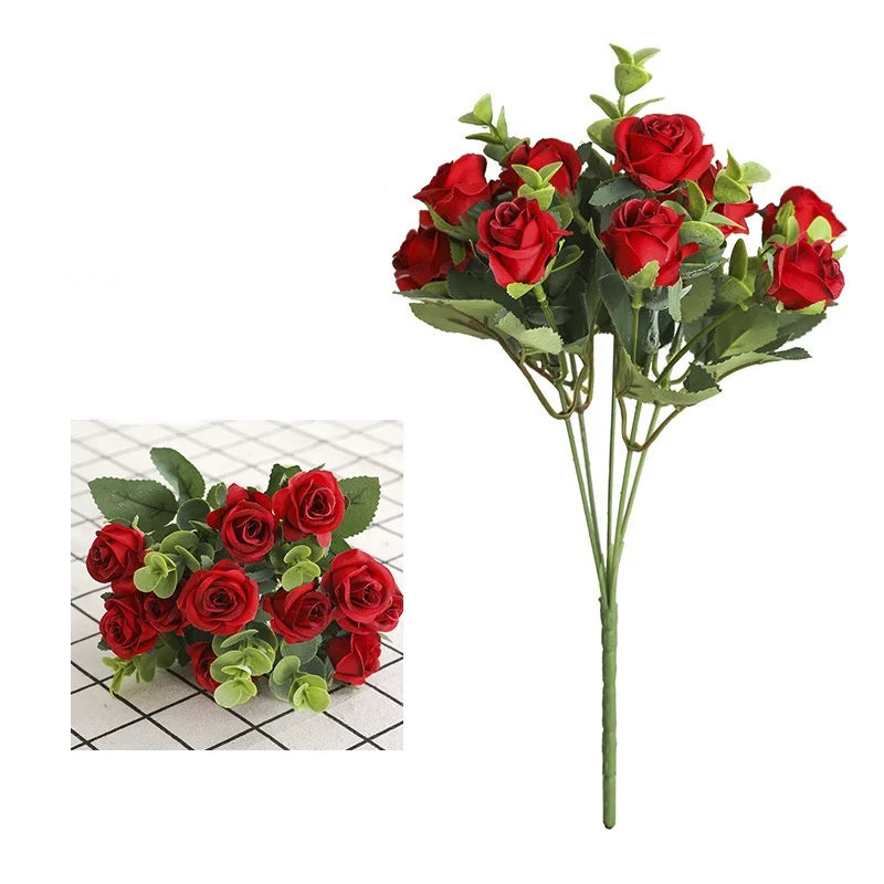 باقة ديكور بايتس™ من 5 شوكات و11 وردة لديكور المنزل - محاكاة صغيرة على الطراز الكوري