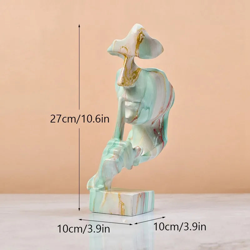يُجسّد التصميم الفريد لهذا التمثال تفسيرًا تجريديًا آسرًا لوجه، مُضفيًا لمسةً من الغموض والإثارة على محيطك. سواءً عُرض على رف أو رفّ مدفأة أو مكتب، سيُثير هذا التمثال نقاشًا واسعًا ويُشكّل نقطةً محوريةً في أي غرفة.