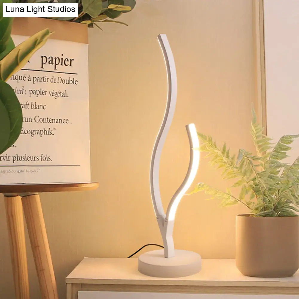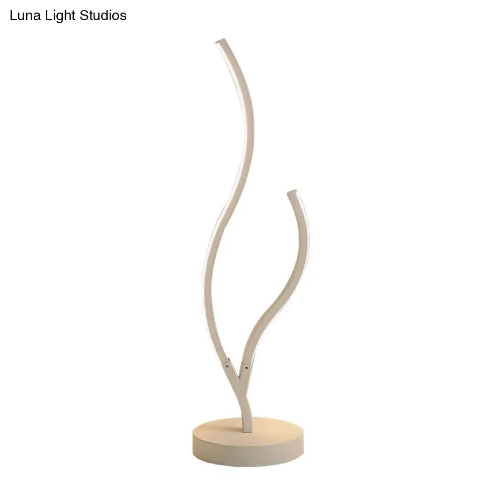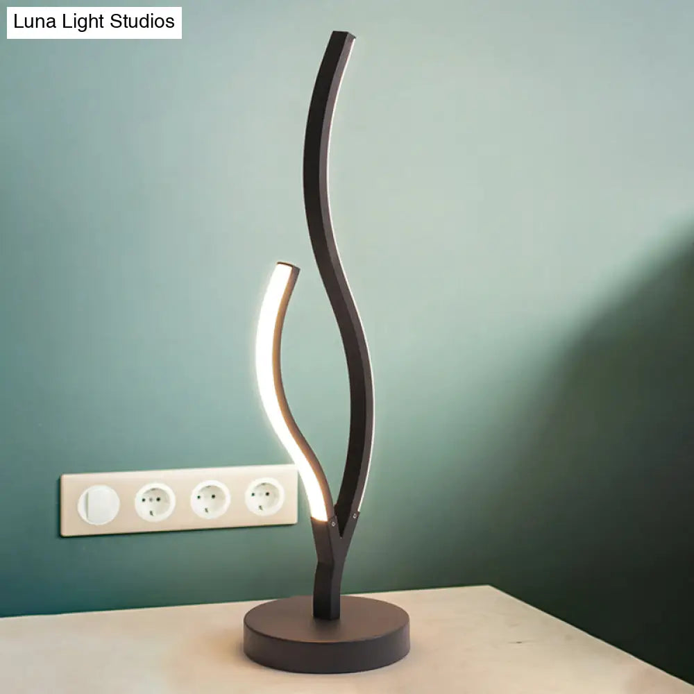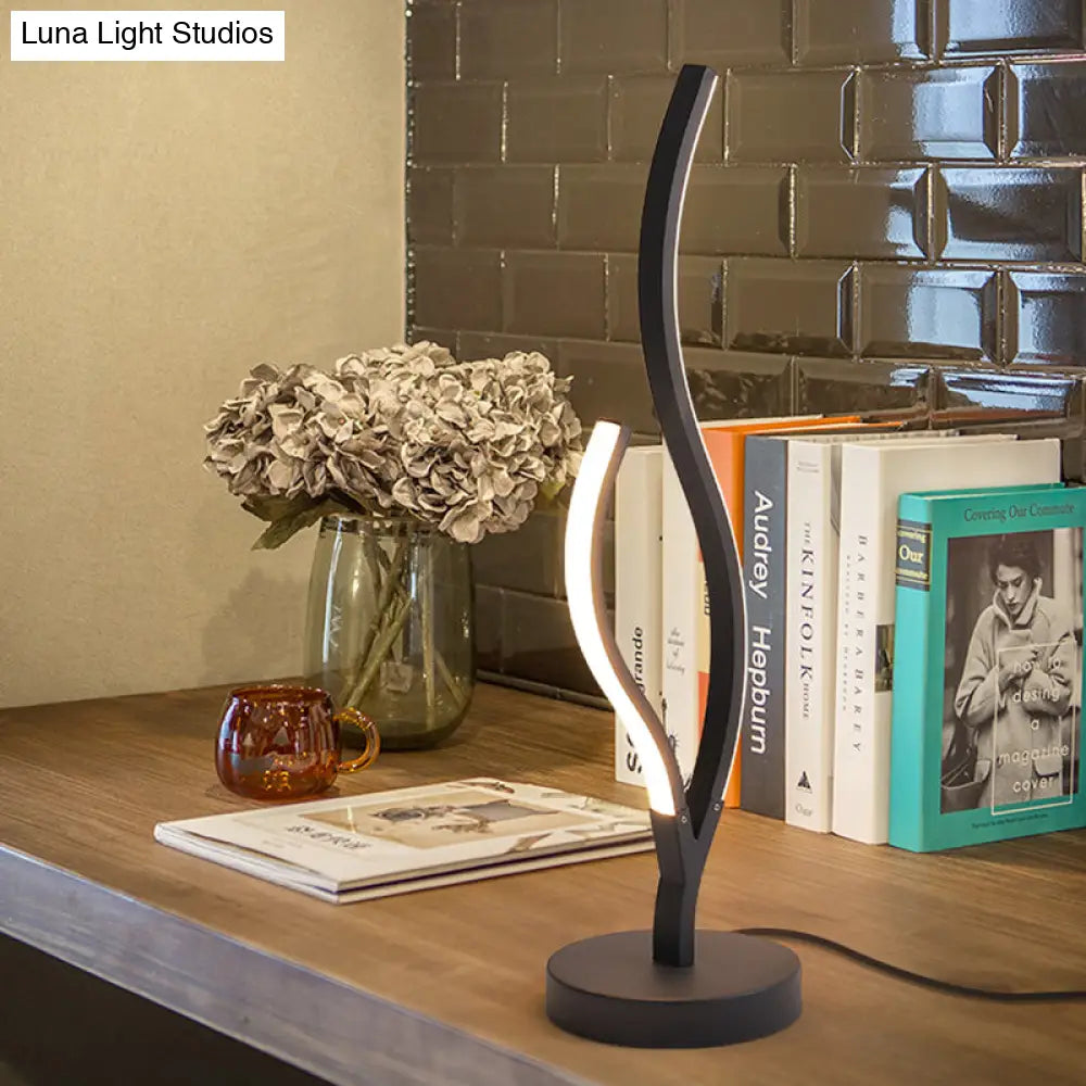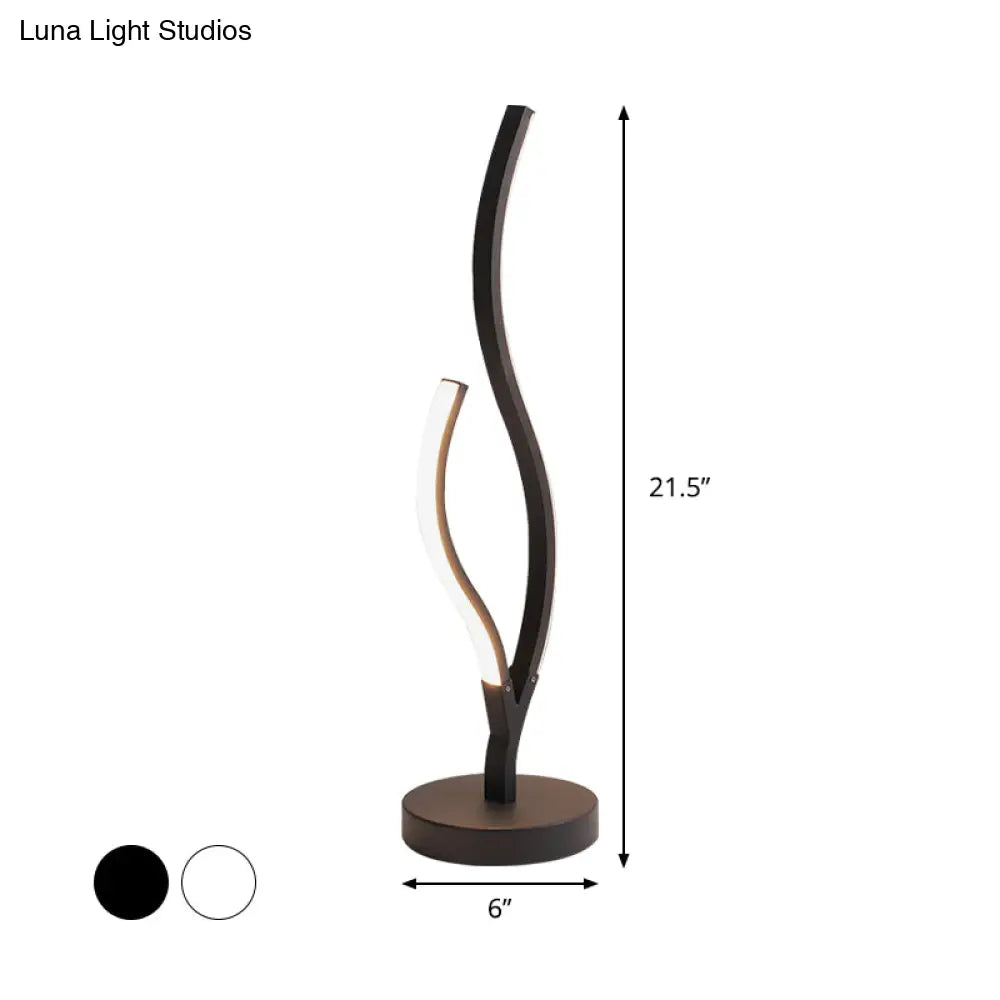 مصباح طاولة جانبي LED من الأكريليك المنحني باللونين الأسود والأبيض مع قاعدة دائرية معدنية - إضاءة أنيقة وبسيطة للمهام