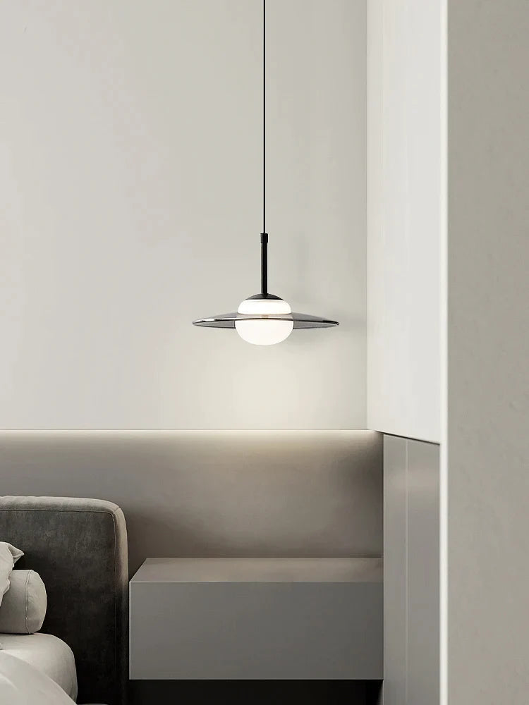 مصباح معلق زجاجي من DecorBites™ بجانب السرير مع لمسات نحاسية